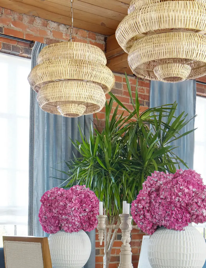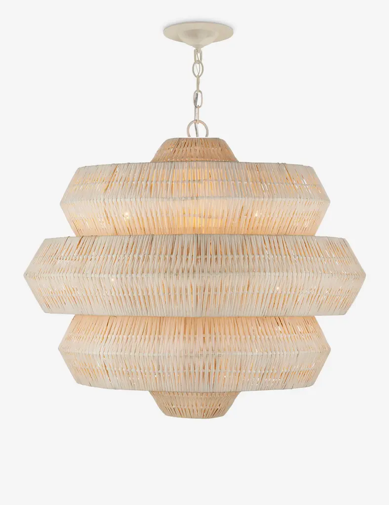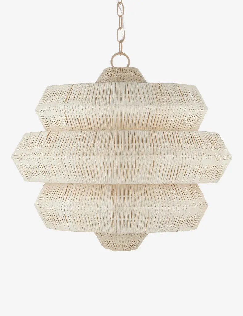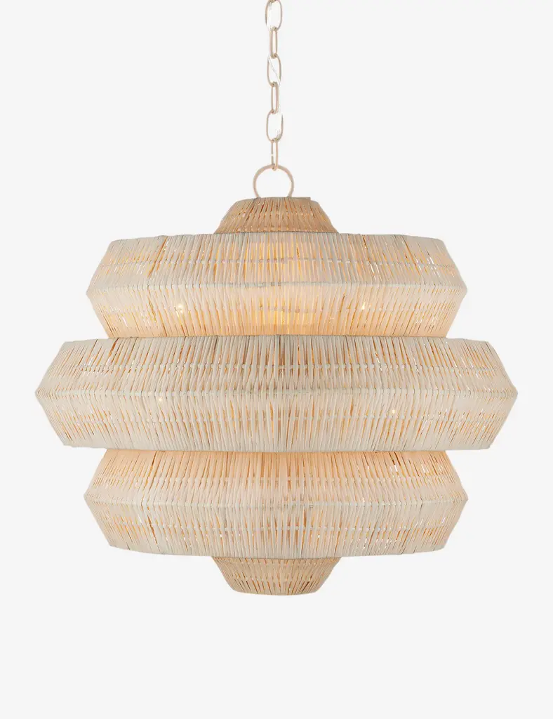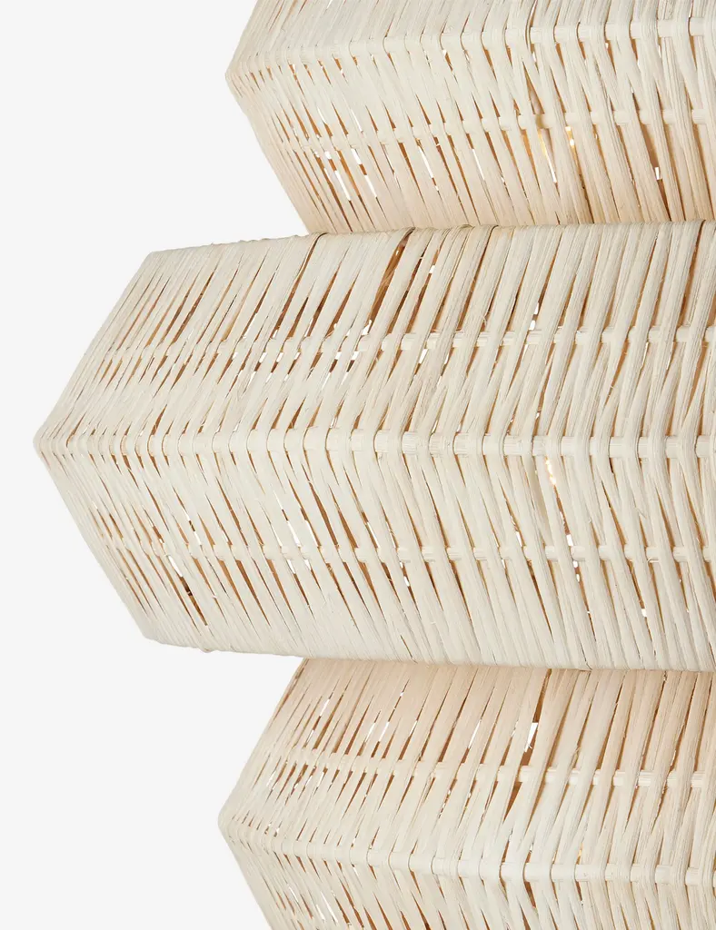 Style a textural statement overhead with the Katriel chandelier. A woven rattan design bounds the light with an attractive shape and organic feel that will elevate the room. The geometric silhouette brings a sculptural edge to the natural warmth of this modern chandelier.