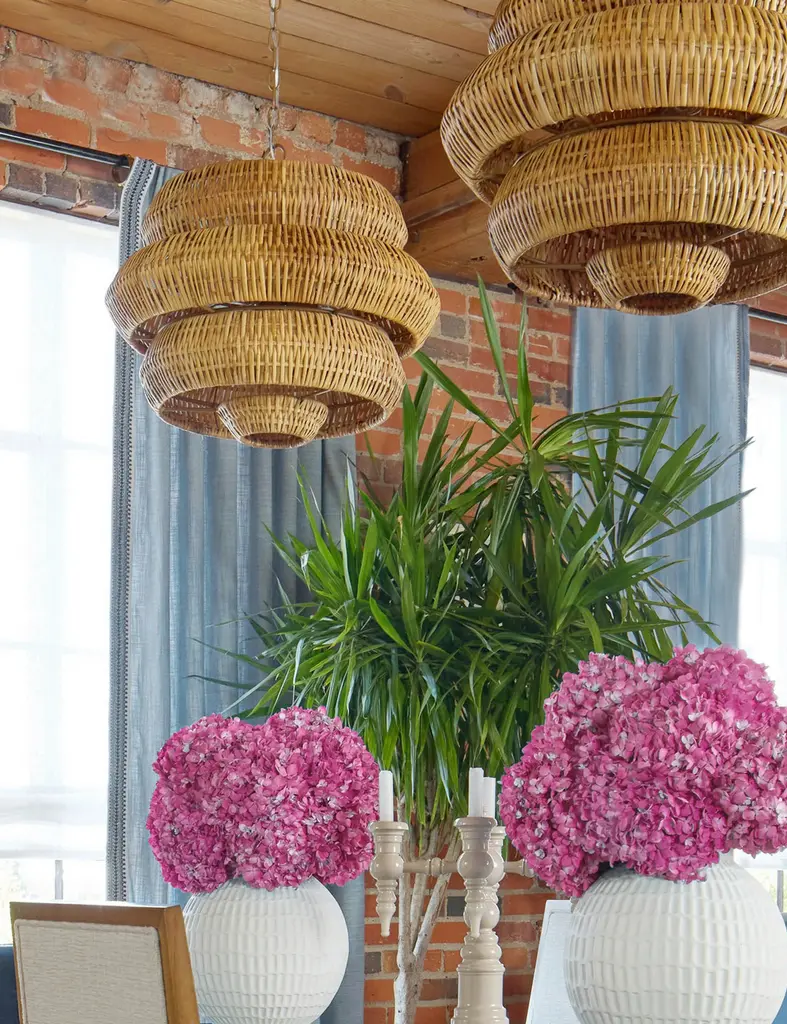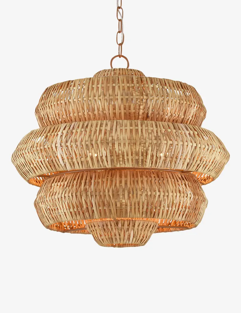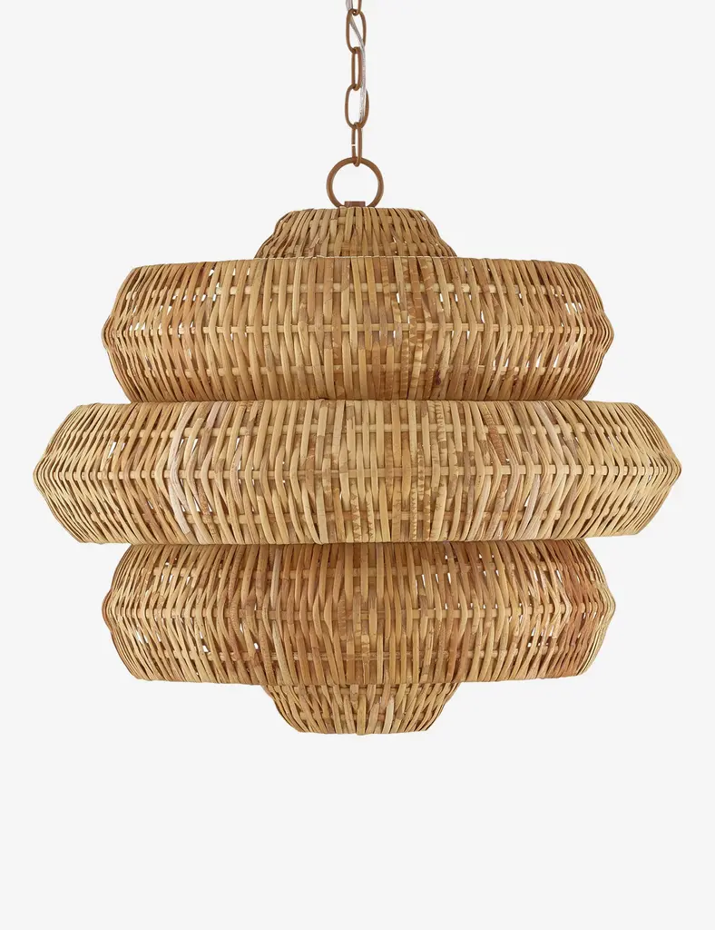Style a textural statement overhead with the Katriel chandelier. A woven rattan design bounds the light with an attractive shape and organic feel that will elevate the room. The geometric silhouette brings a sculptural edge to the natural warmth of this modern chandelier.