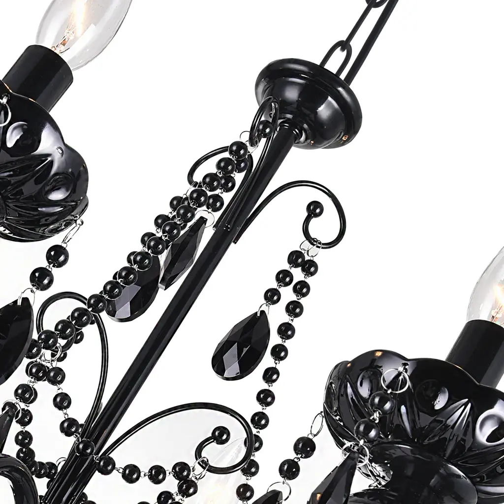 Transform your bedroom into a warm and inviting sanctuary with the Keen 3 Light 16 inch Chandelier. Designed to add a touch of sophistication, this stunning chandelier features a graceful black candelabra frame adorned with draping black faceted crystal beads and dangling black faceted crystal teardrops. The dark, dramatic finish brings a bold yet refined elegance to any space.