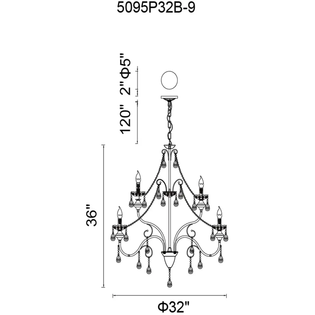 Keen 9 Light 32 Inch Black Up Chandelier Ceiling Light
