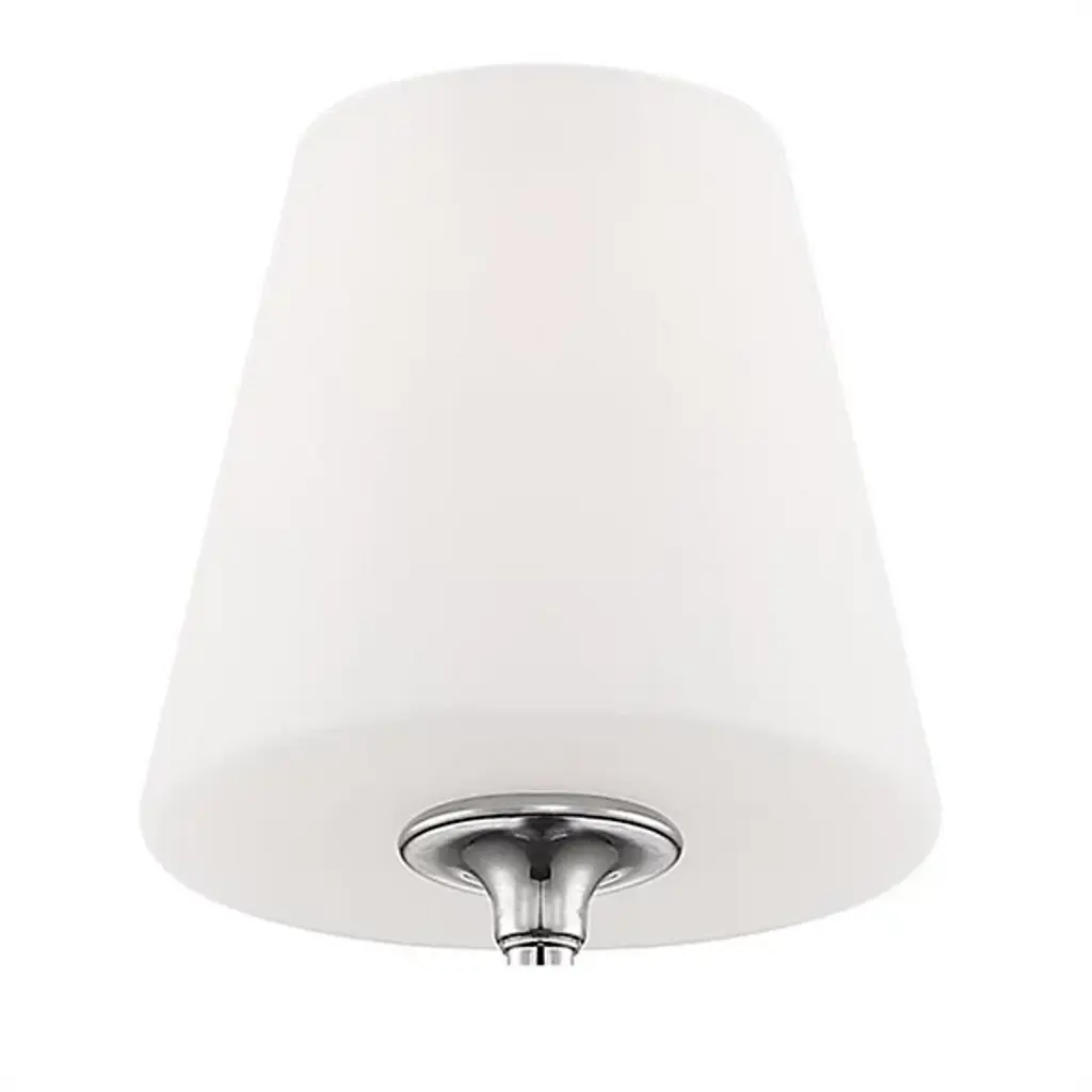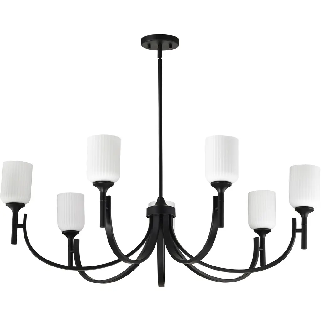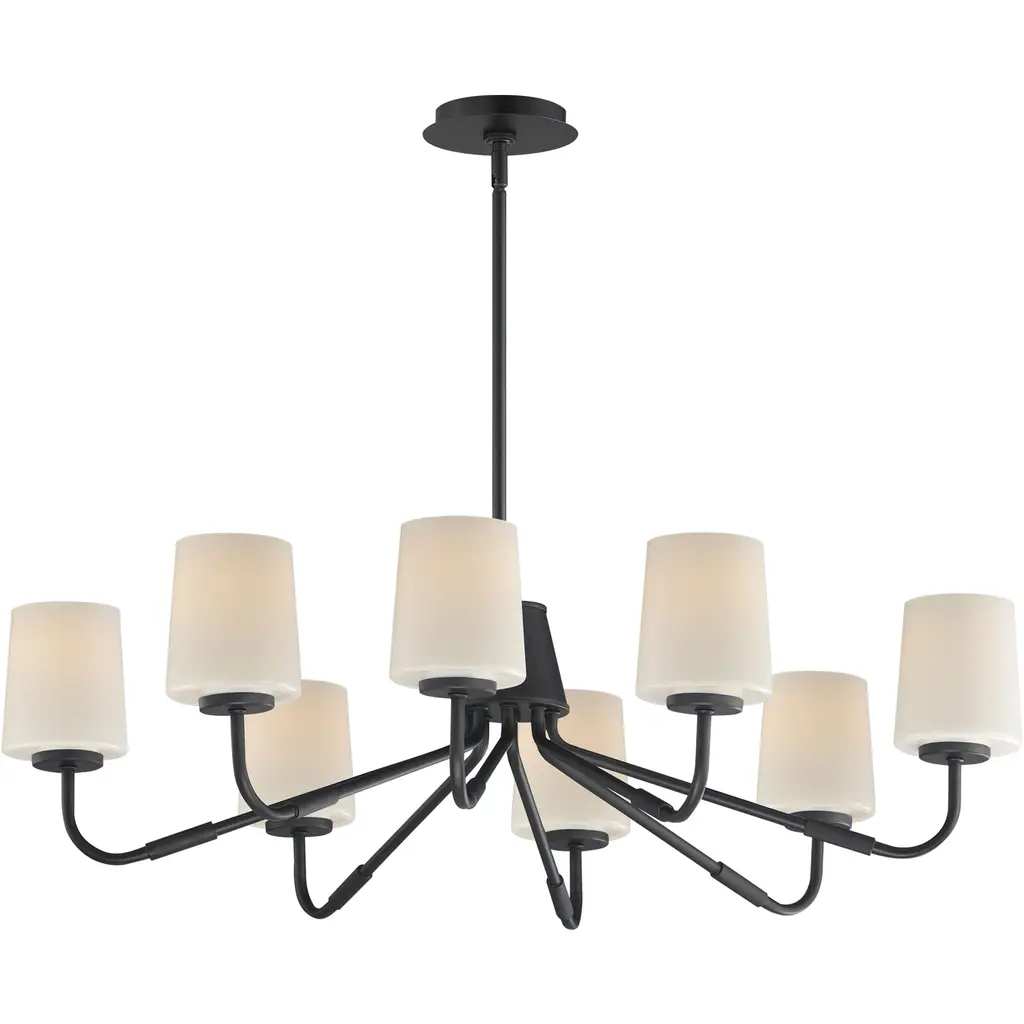 The Keenan Chandelier by Crystorama is a modern addition to spaces with a minimalistic sense of style. Simply structured, less is more as this piece is supported by a single down rod that holds a series of gracefully curved arms, creating a double-tiered composition. Each tier has its own arrangement of crisp, tapered glass shades that softly diffuse a welcoming layer of light onto surroundings, completing this elegant chandelier