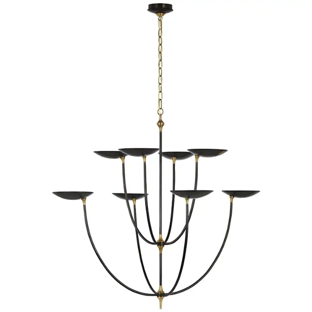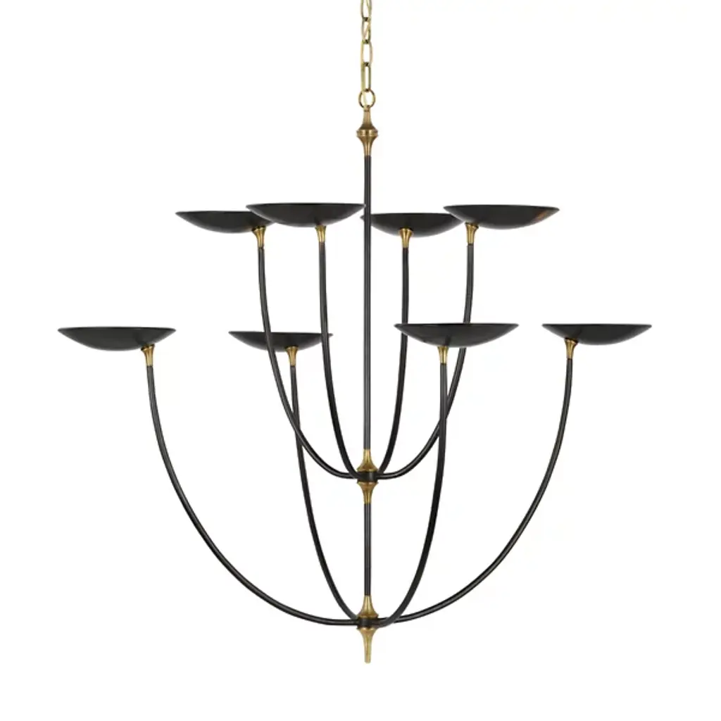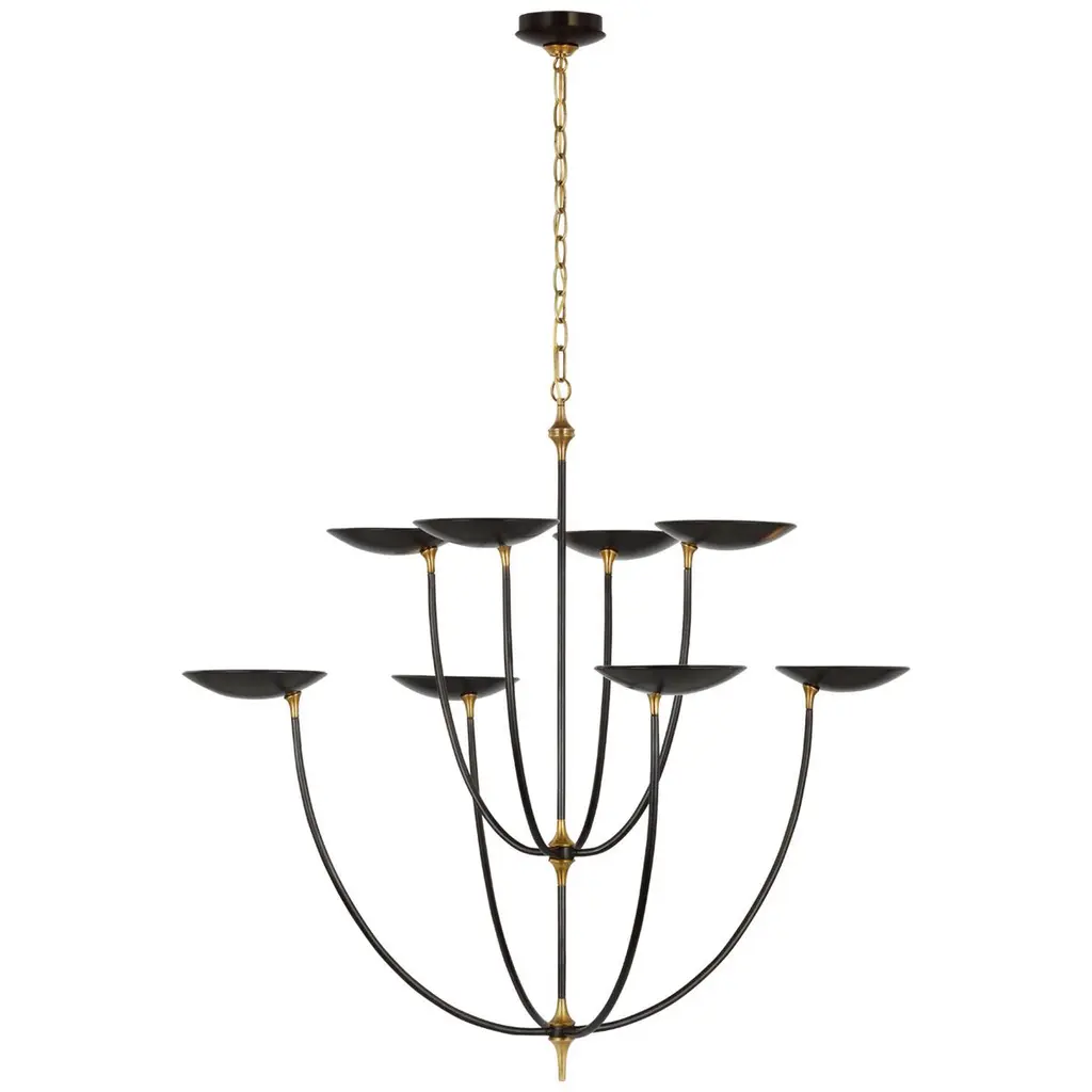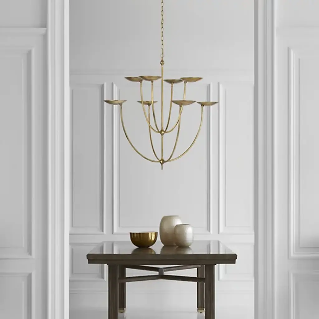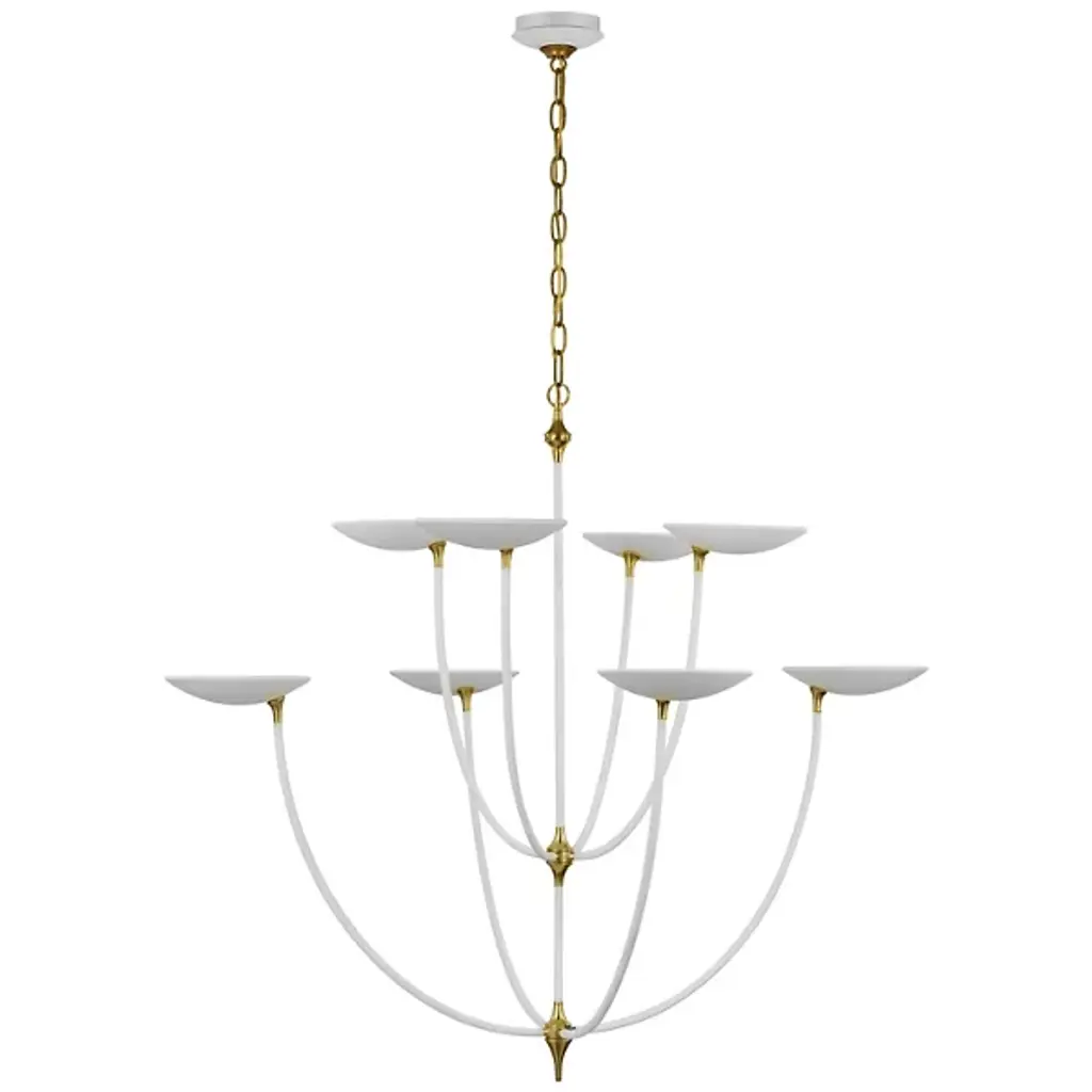 Lavishly elegant in form and finish. The Keira LED Chandelier was designed by Thomas O’Brien for Visual Comfort Signature, formerly known as Visual Comfort, of New York. Composed of multiple swooping arms that hold each shade in place, they feature integrated LED illumination that boasts lower energy consumption and a longer lifespan than the traditional bulbed lighting unit. This piece of lighting is a perfect example of how beautiful and timeless a chandelier can be when enlightened by design.