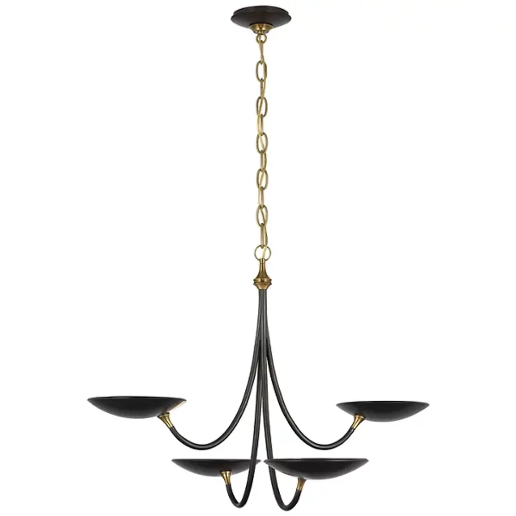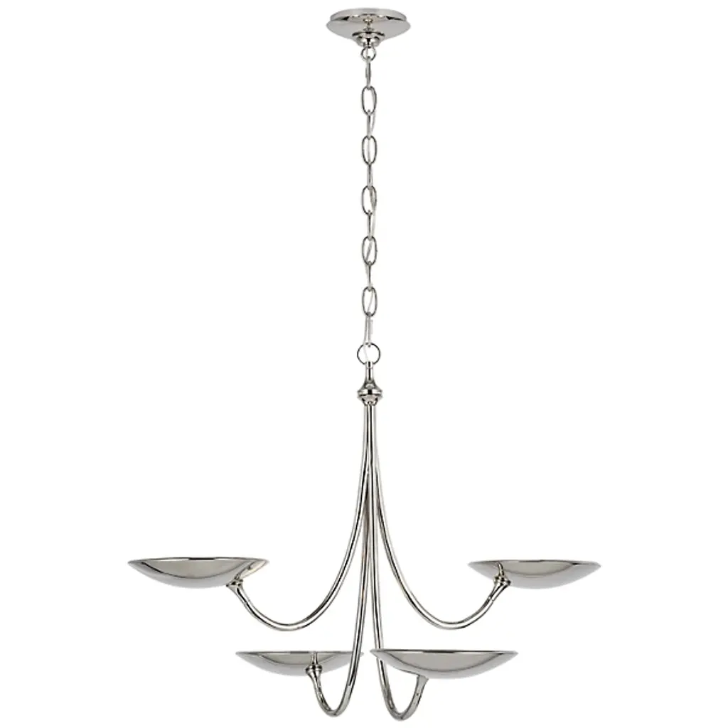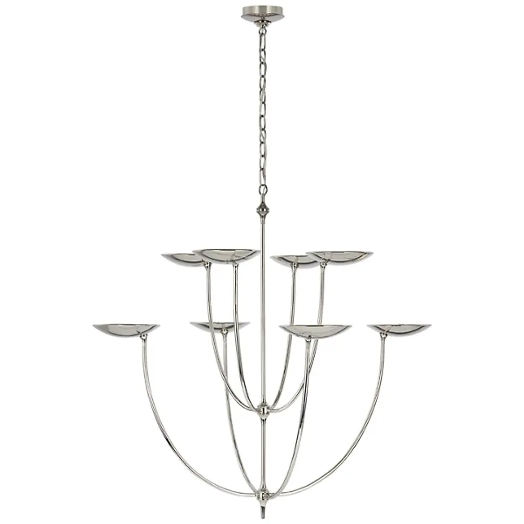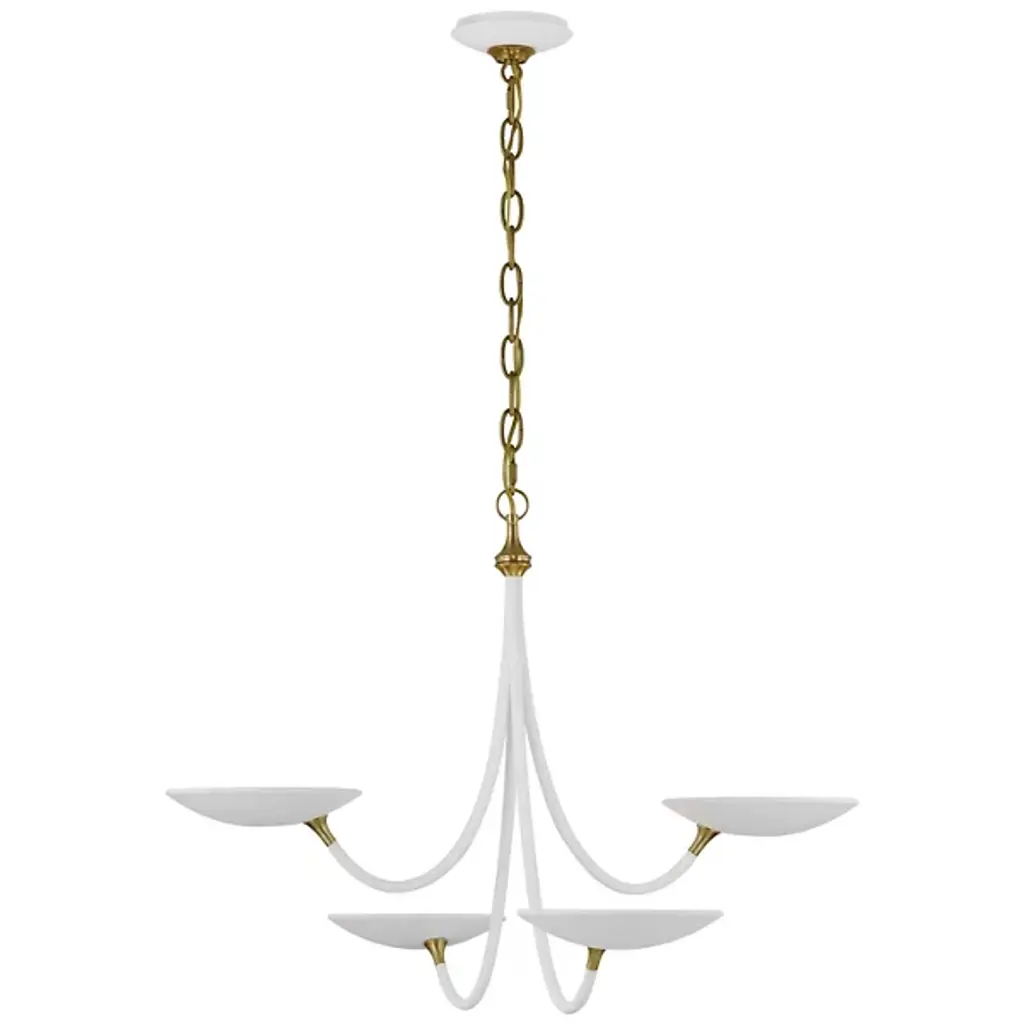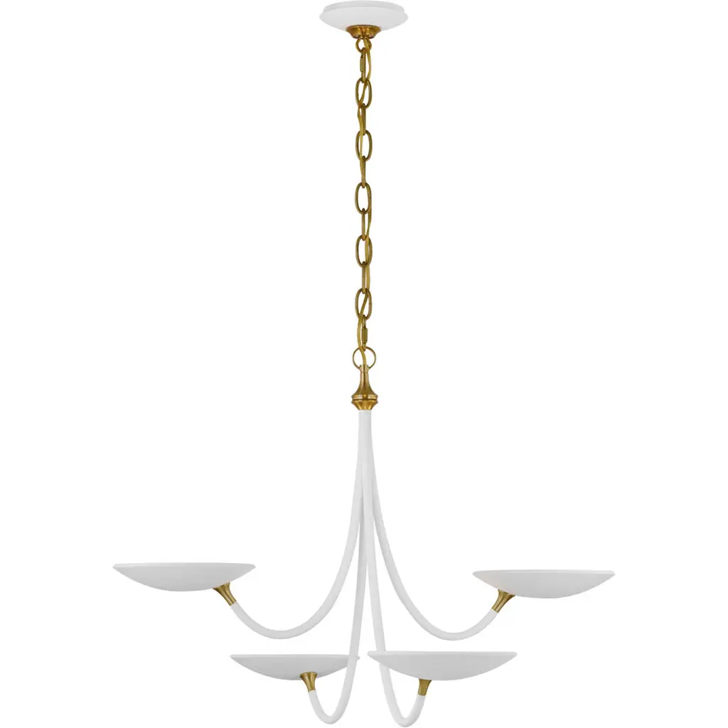 Lavishly elegant in form and finish. The Keira LED Chandelier was designed by Thomas O’Brien for Visual Comfort Signature, formerly known as Visual Comfort, of New York. Composed of multiple swooping arms that hold each shade in place, they feature integrated LED illumination that boasts lower energy consumption and a longer lifespan than the traditional bulbed lighting unit. This piece of lighting is a perfect example of how beautiful and timeless a chandelier can be when enlightened by design.