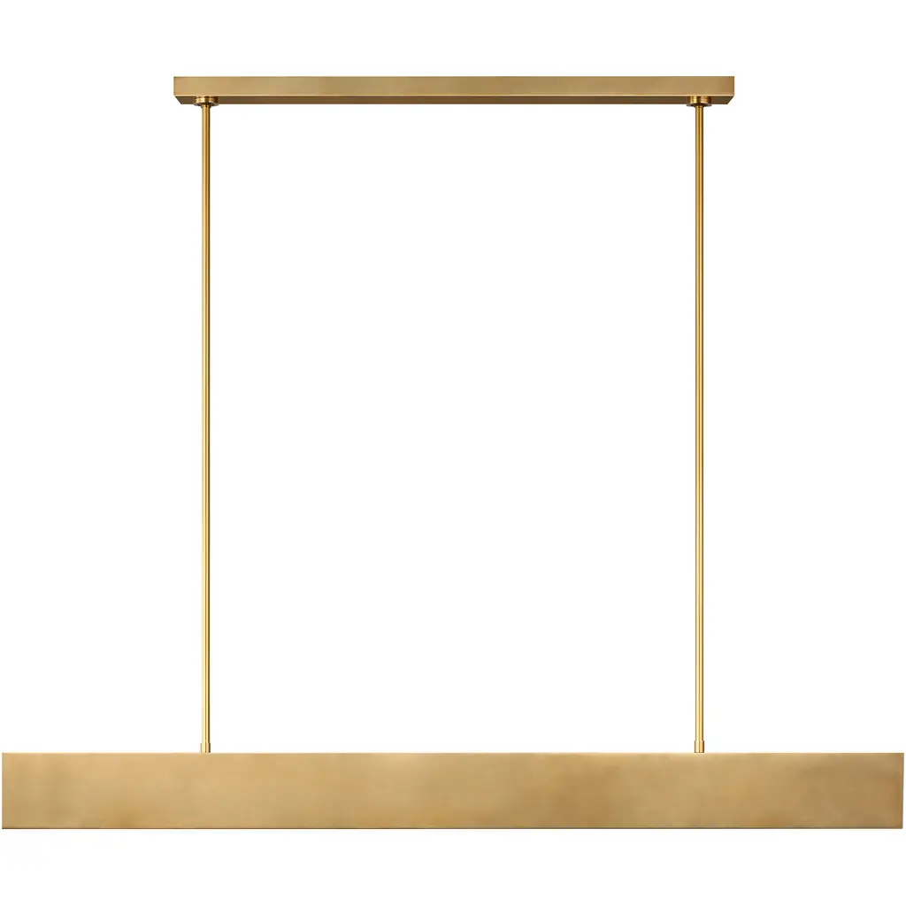 The Pench Large Tapered Linear Chandelier by Kelly Wearstler utilizes the coolness of metal married with an LED light source to create a one-of-a-kind linear masterpiece. It balances this with the metal stems at the center of the pendant. Monolithic metal forms are illuminated artfully by an unseen light source within.