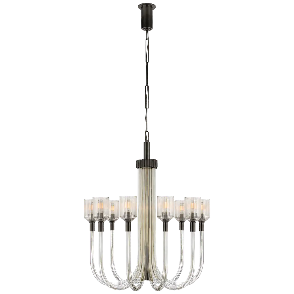 Kelly Wearstler For Visual Comfort Signature Reverie Medium Single Tier Chandelier In Clear Ribbed Glass And Bronze