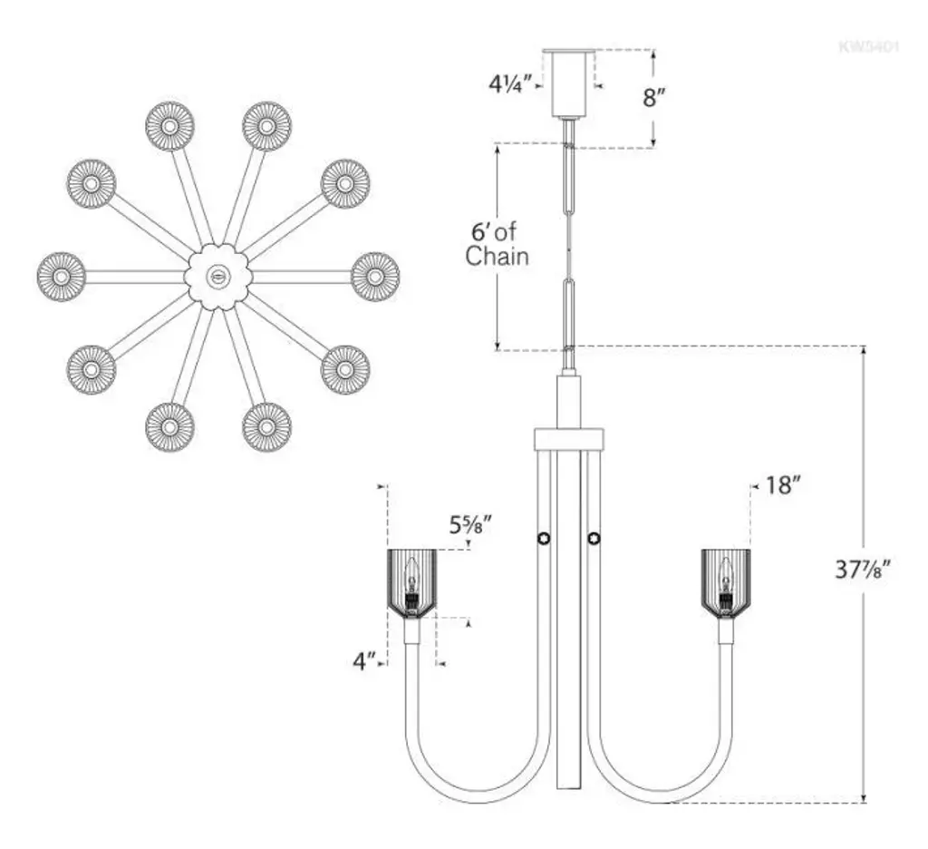 Reverie Medium Single Tier Chandelier in Clear Ribbed Glass and Bronze Designer: Kelly Wearstler Canopy: 4.25" Round Mounting: Chain Shade Detail: No Option Socket: 10 - E12 Candelabra Wattage: 10 - 40 B11 Safety Rating Location: DRY
