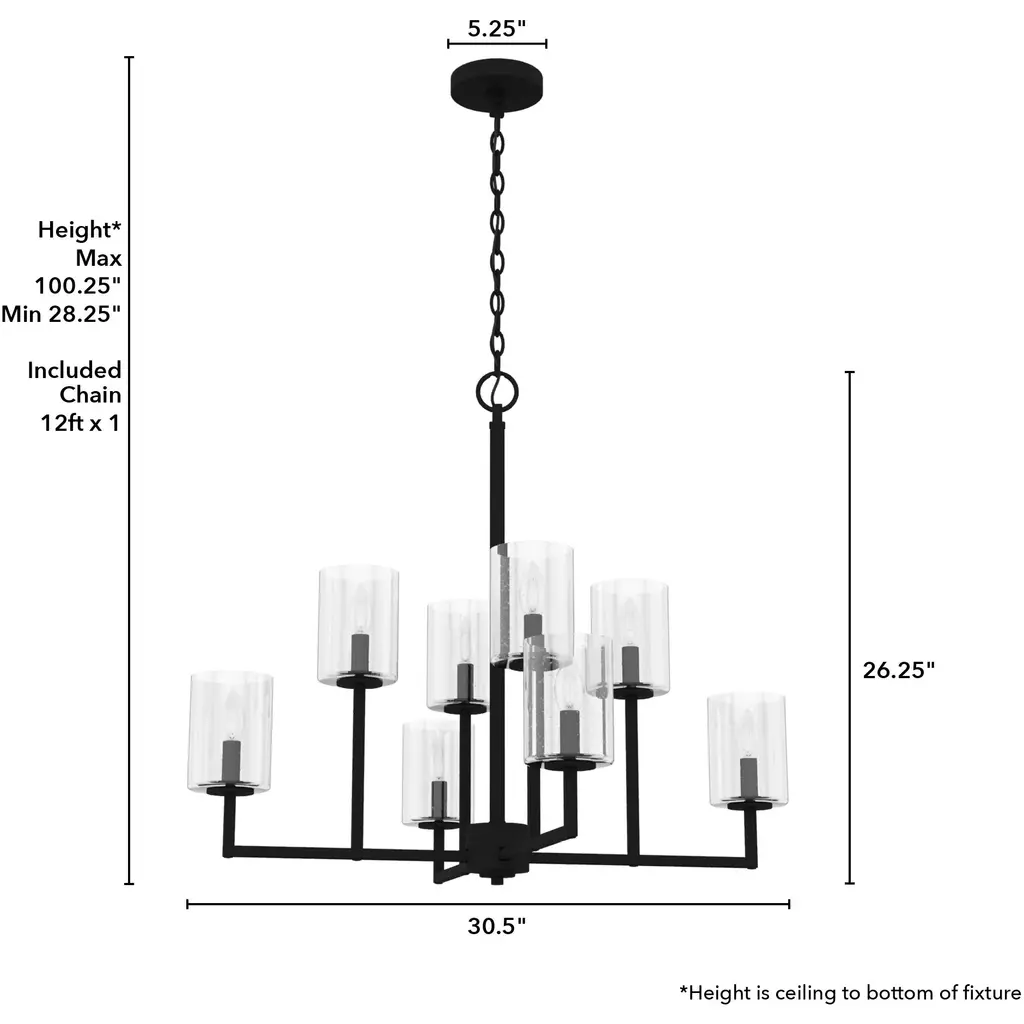 Kerrison 8 Light 30.5 Inch Natural Black Iron Chandelier Ceiling Light