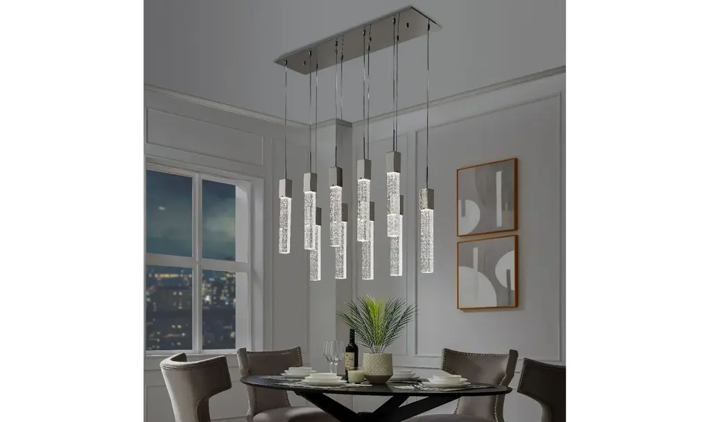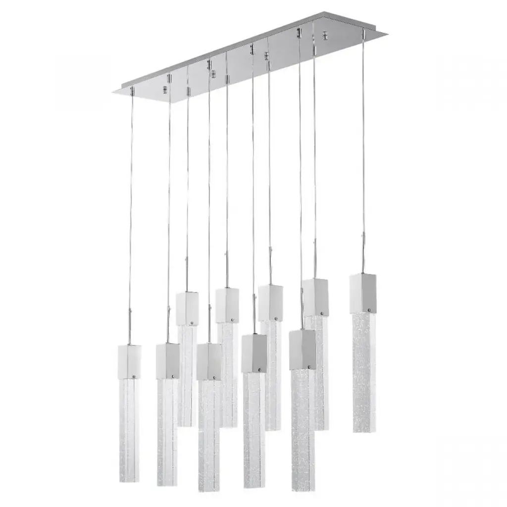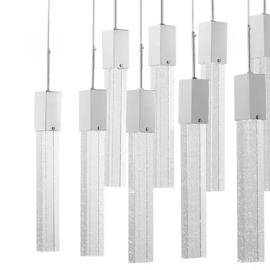 This Finesse Decor piece is made from high end glass crystal and chrome metal finish. Each of the extra large crystals have a sparkling bubbles look inside, giving it a luxurious and glamorous glance. The ten light Sparkling Night Chandelier is the perfect piece to add a flare of decadence to your space. This chandelier will most definitely be the center of attention in any space of your choice!