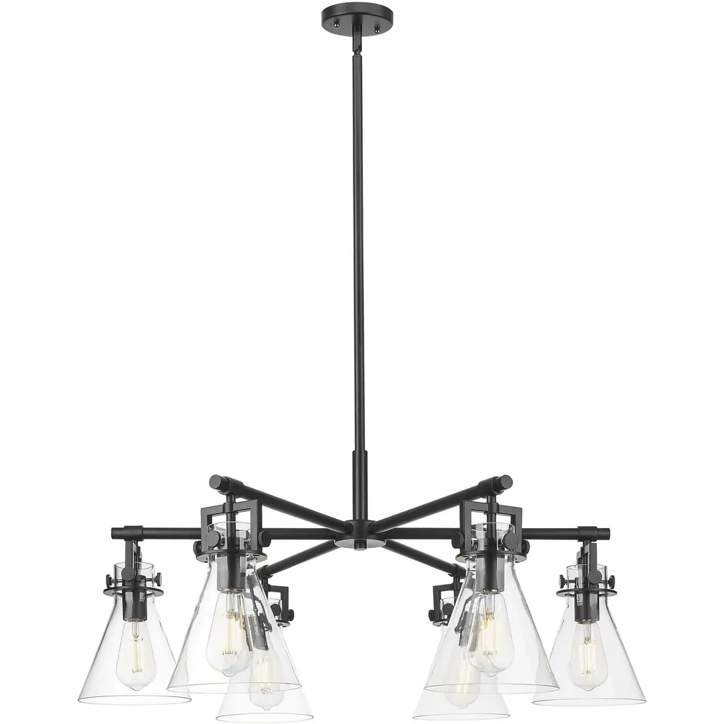 Collection: Aivian, Material: Steel, Finish Color: Black, Width: 30", Height: 13.5", Lamping Type: Incandescent, Number Of Bulbs: 5, Wattage: 75 Watts, Moisture Rating: Dry Rated, Desc: The Aivian 30" 5 light chandelier scoffs at cliches with its industrial-style arms in a Black finish. Its angled knurled detail is a welcome surprise. When vintage bulbs are used, this piece really comes into its own. It's both refined and edgy, making it truly one of a kind. ,