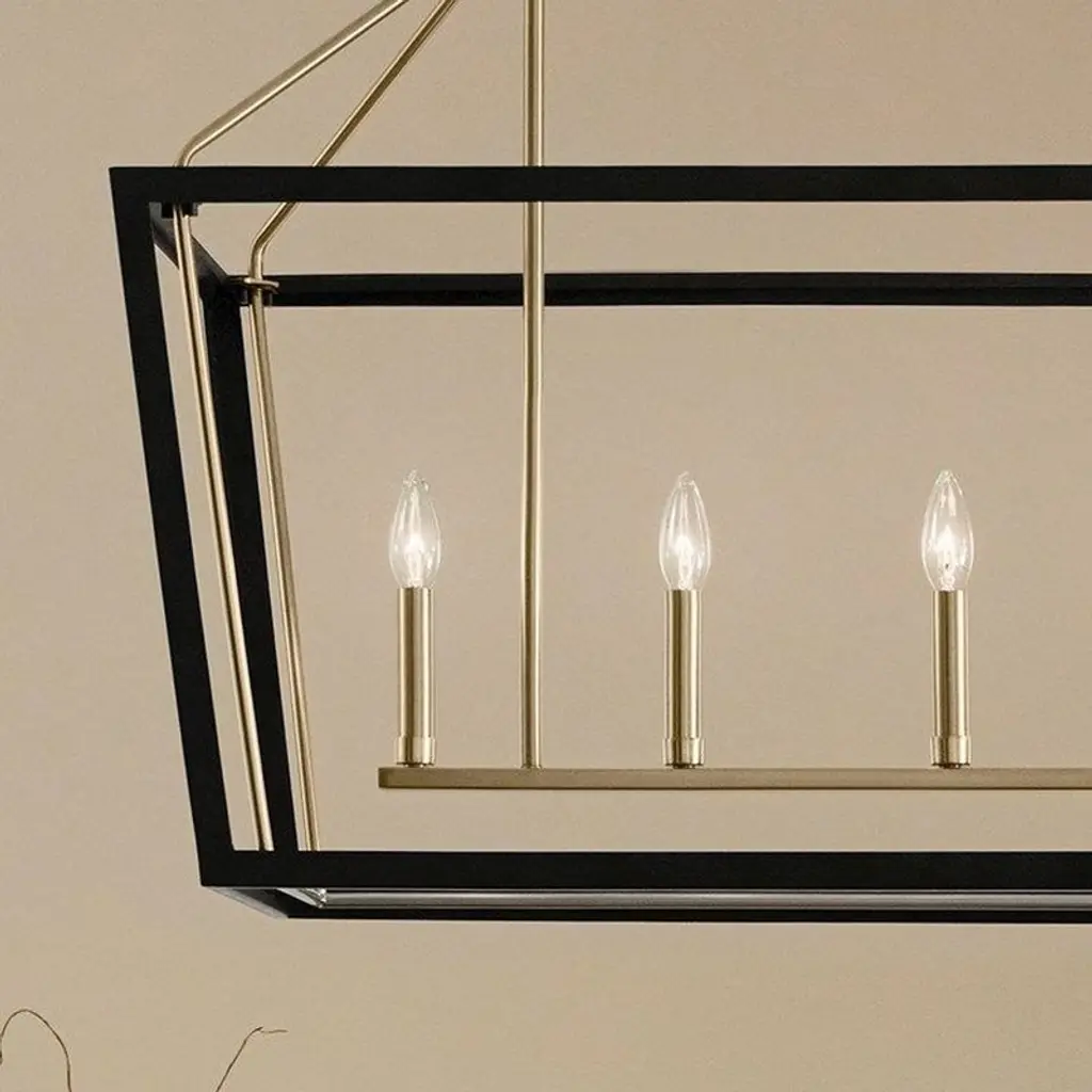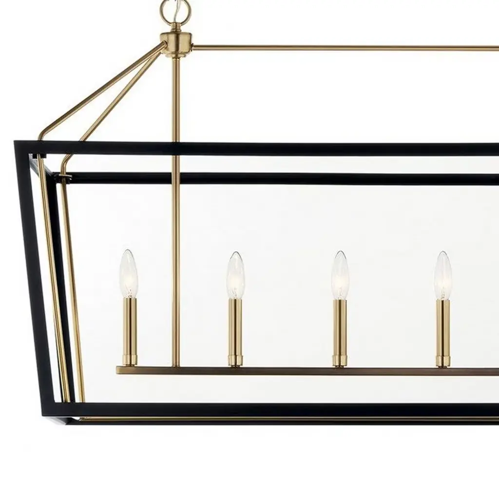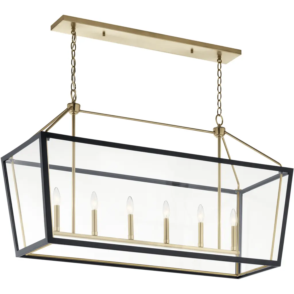 Delvin 44 Inch 6 Light Linear Chandelier with Clear Glass in Champagne Bronze and White