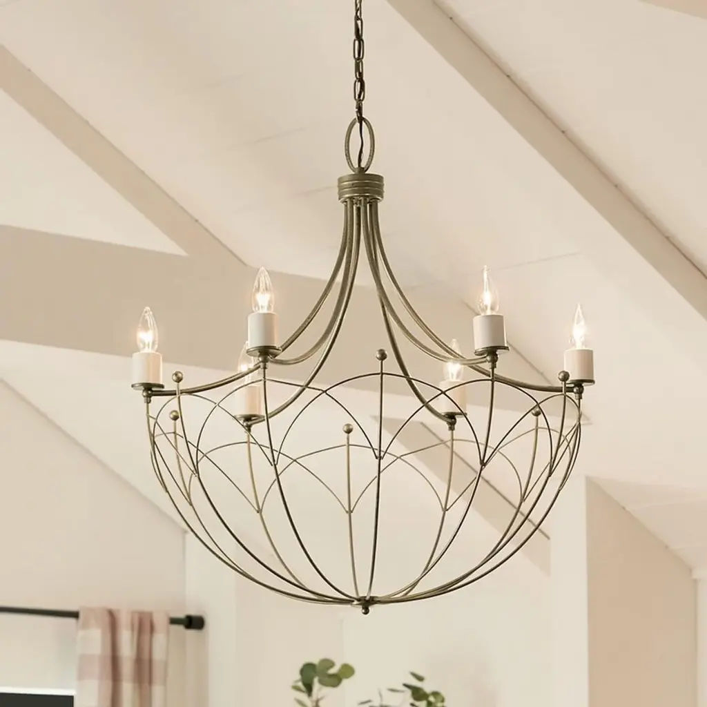 Collection: Topiary, Material: Steel, Finish Color: Character Bronze, Width: 28.25", Height: 30.25", Length: 28.25", Chain Length: 72", Lamping Type: Incandescent, Number Of Bulbs: 6, Wattage: 60 Watts, Moisture Rating: Dry Rated, Desc: The Topiary 6 light chandelier draws inspiration from the flowing linework seen in vintage planters. Elegant candle sleeves sit atop floral-inspired curves finished in the classic Textured Black. Adjust its chain to a height right for your space. Influenced by nature, elegant by design, Topiary's heirloom feel vibes with your vintage lifestyle A rich Black finish with a subtle surface texture that creates dimension as it effortlessly complements various design styles Topiary's candelabra bulbs illuminate your space in a warm, cozy, vintage style Fixture measures 28.0-in diameter x 30.2-in height and can be adjusted to hang up to 107.25-in Hang Topiary in your kitchen, vaulted or two-story living or dining area, or a vaulted sunroom Takes six ca