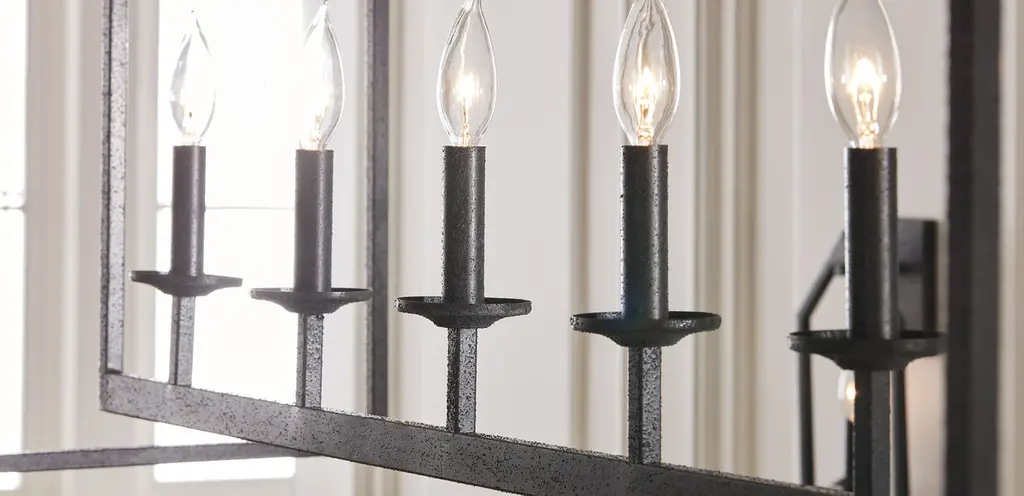 Clean lines and fine details are eloquently articulated in Killian, a sophisticated chandelier that's perfect for spaces where an elongated fixture is needed. Crisp lines and a captivating silhouette draw the eye toward the six candles. Unembellished but expressive with a unique textured finish, Killian offers casual contemporary style blended with elements of bold industrial design.