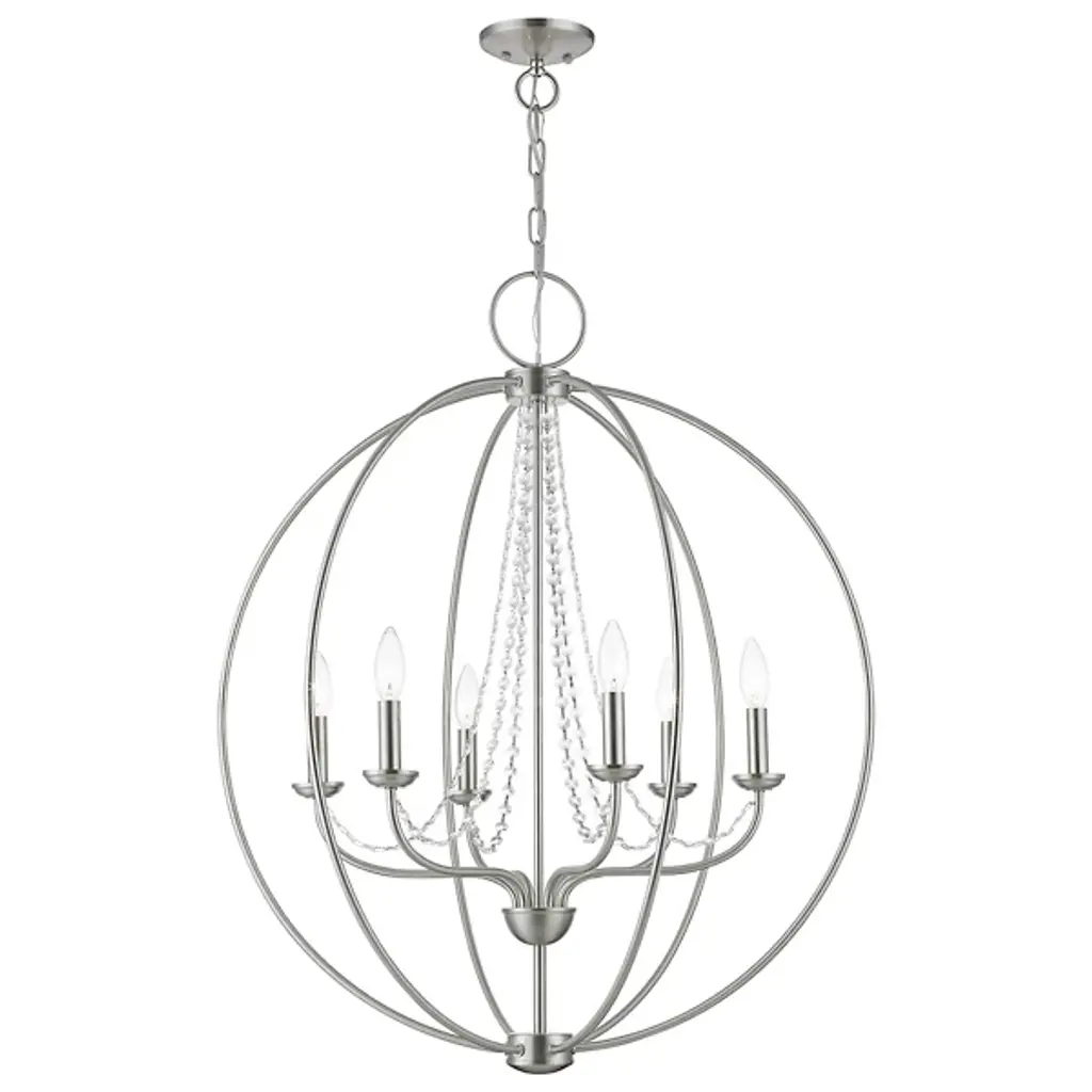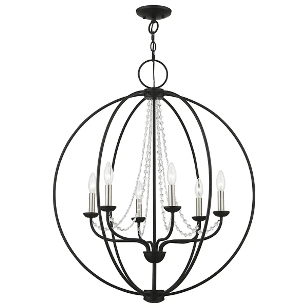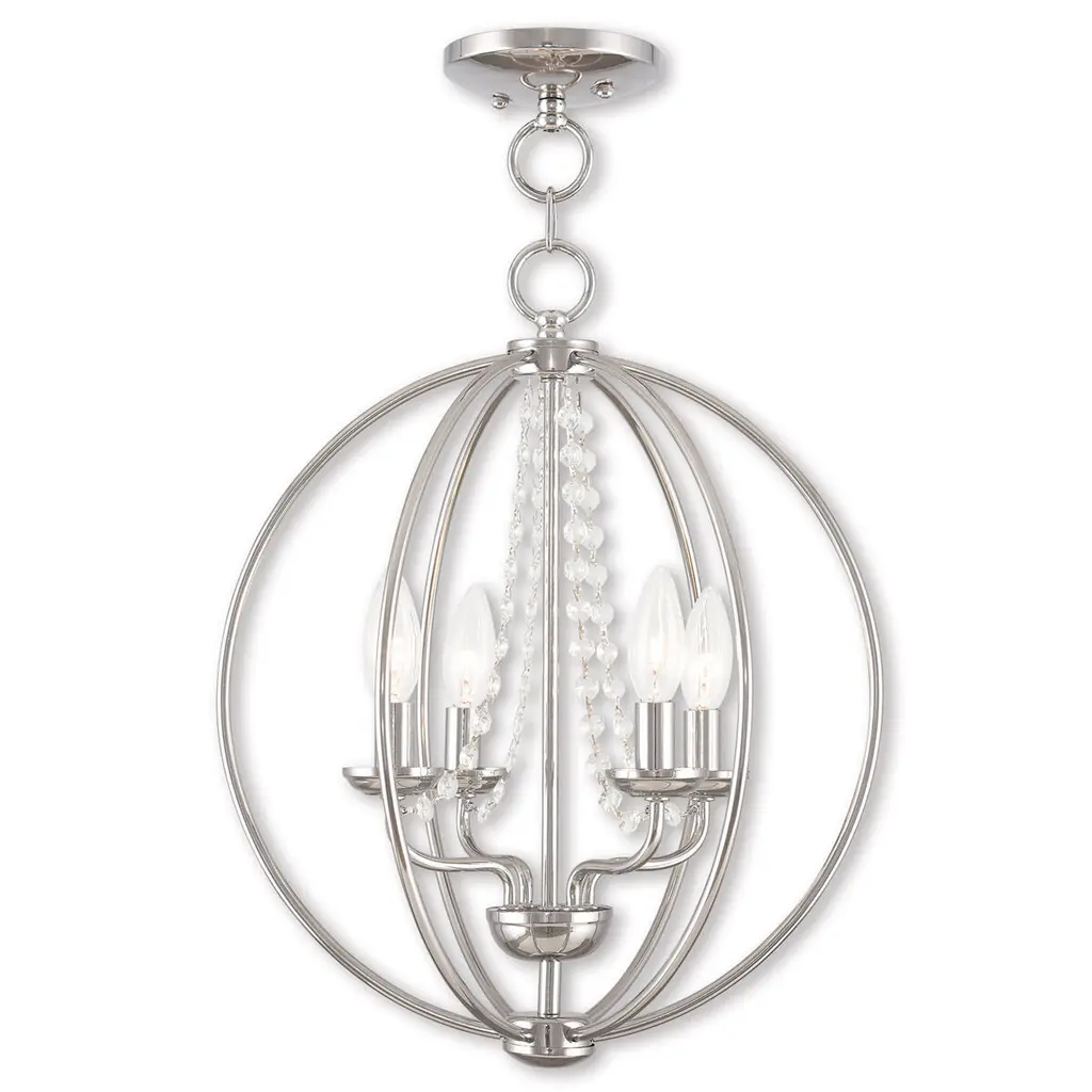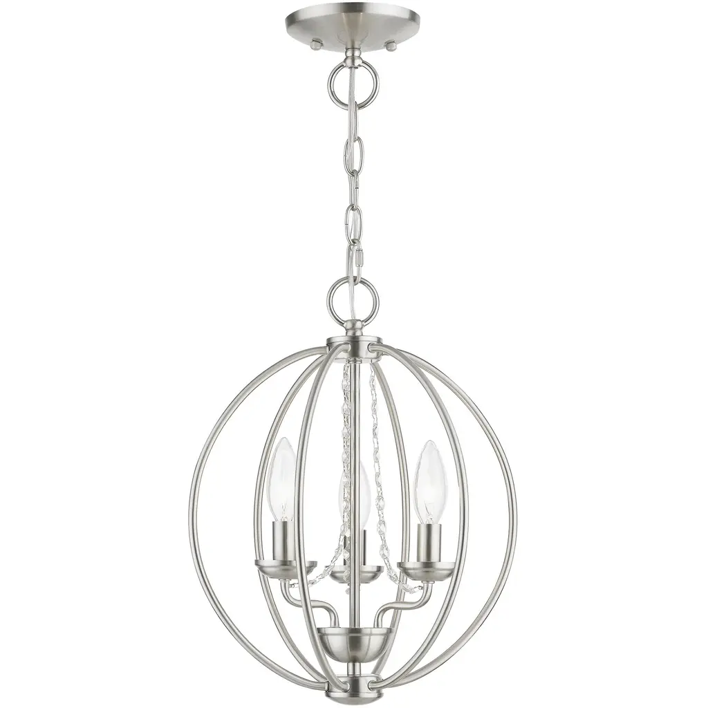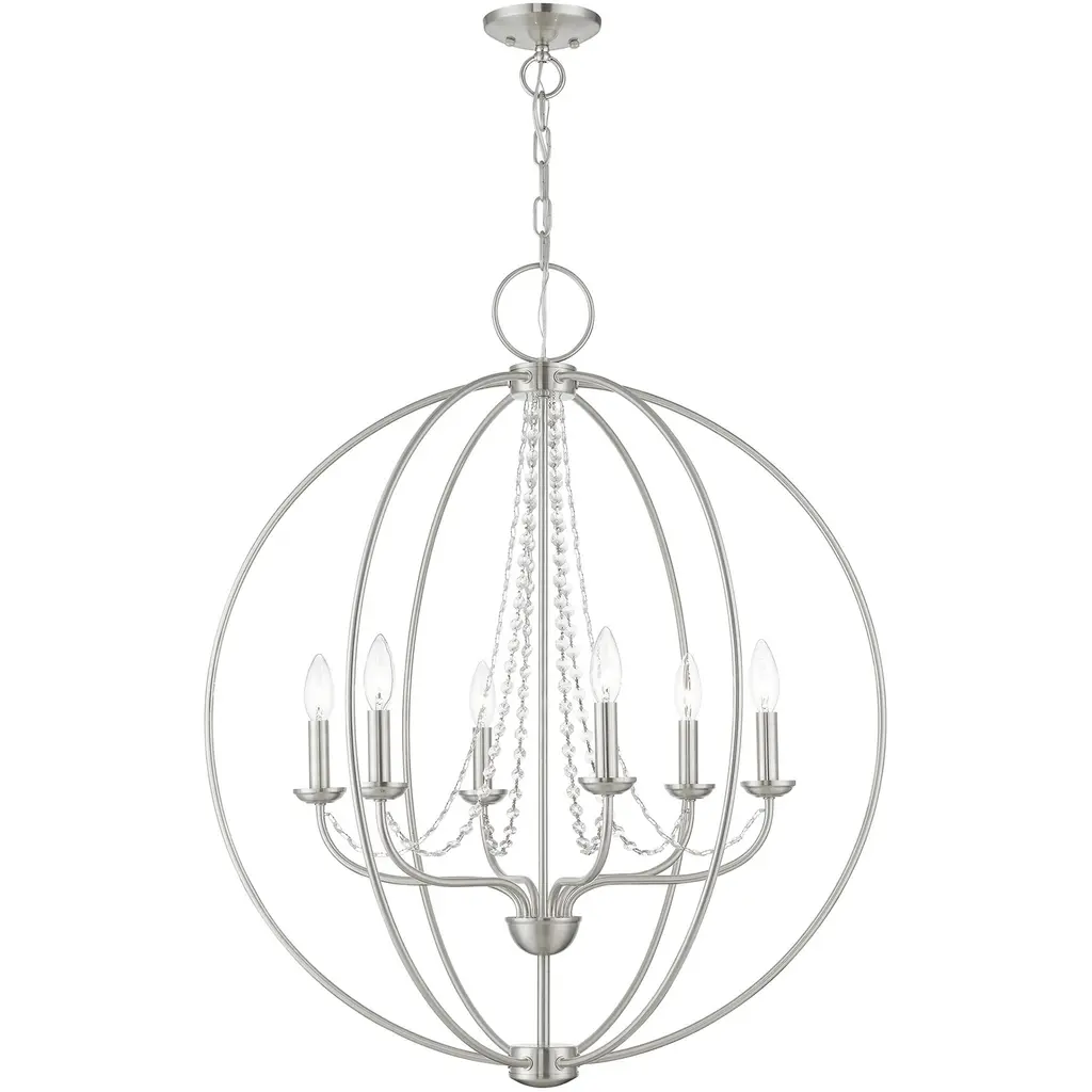 The Kimmy Chandelier is a contemporary piece of luxury by Alder & Ore. It features a multi-pronged candelabra at the center of the orbed silhouette, with a decadent arrangement of crystals draping from within. Hanging from a minimal chain link and canopy on the ceiling, the Mia may be displayed solo or in multiples for an elevated illumination experience.