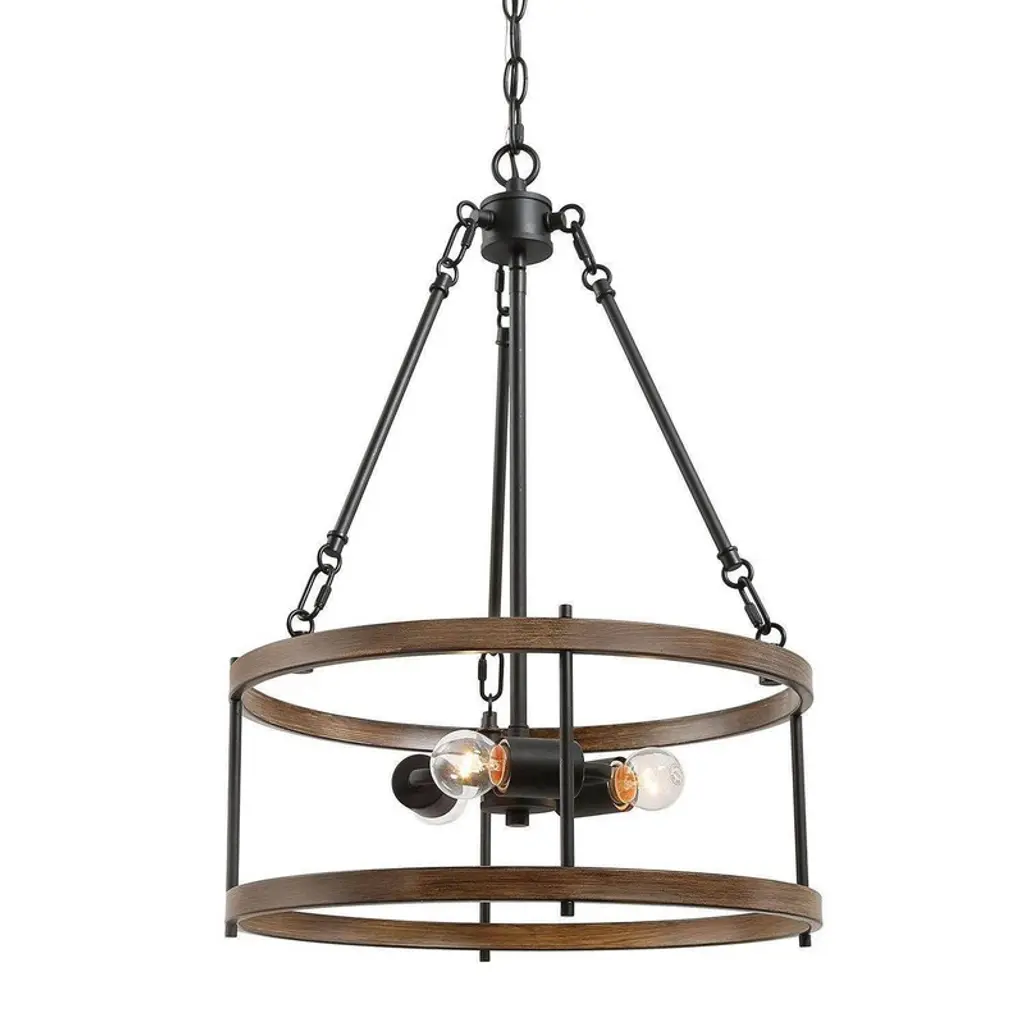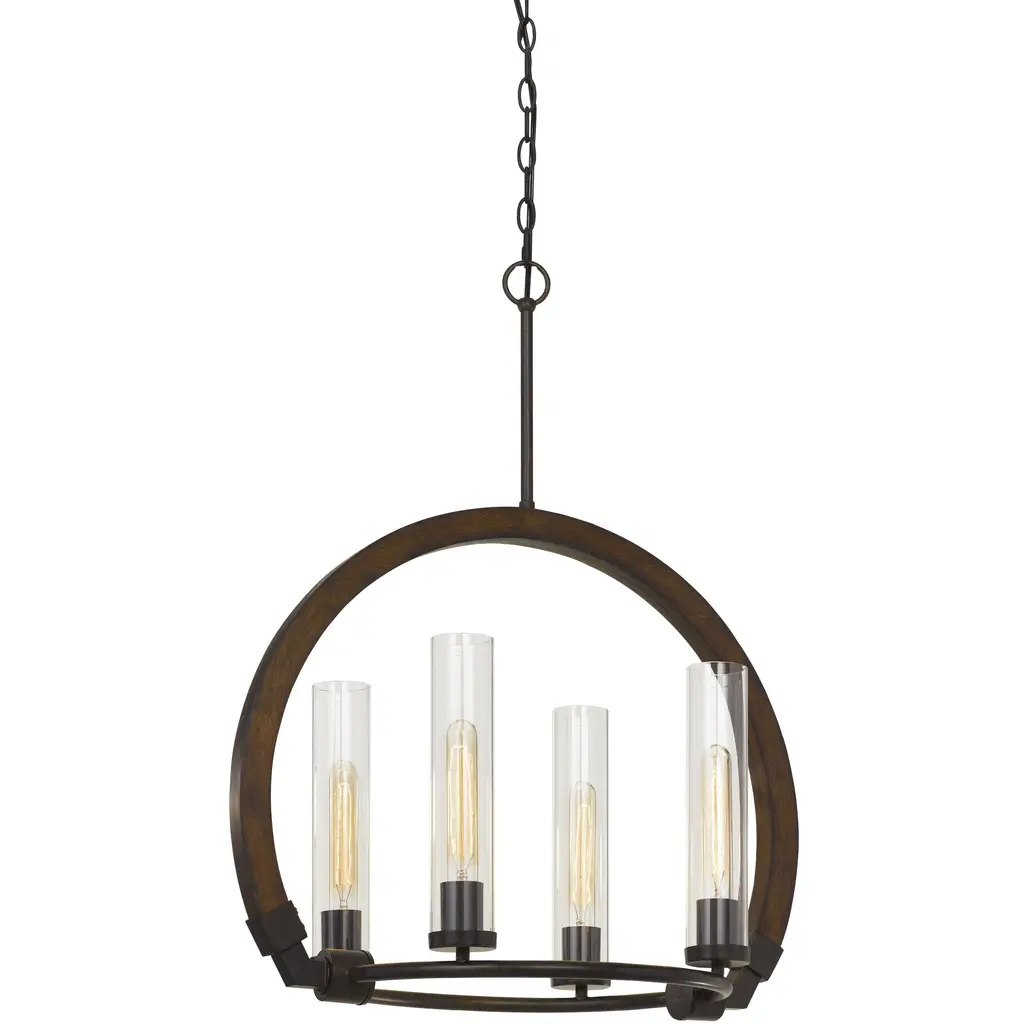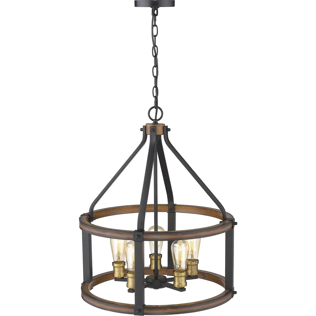 Add elegance over a dining room table with the open frame of this five-light pendant light. Richly hued, the rustic mahogany finish offers a warm feel to the faux barnwood construction.