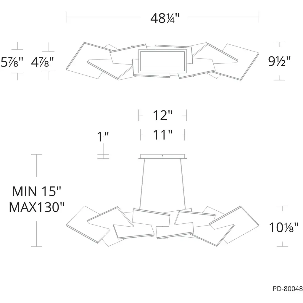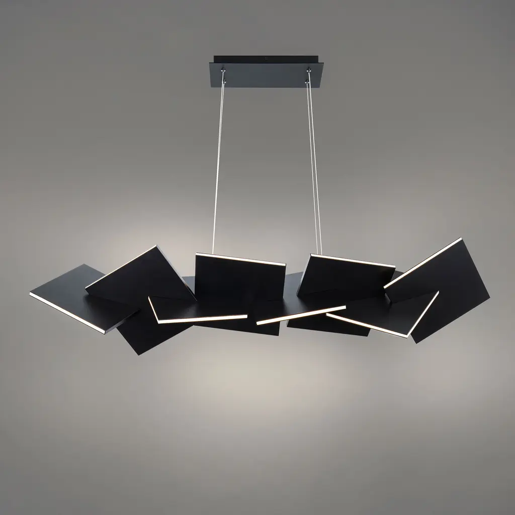 A sculpture of interlocking panels render a thought-provoking aesthetic. Barely visible power aircraft cables add intrigue. The subtle ambient illumination draws attention to this floating work of modern art. Energy efficient integrated LED's provide a long-lasting maintenance-free bright and even illumination throughout any space.