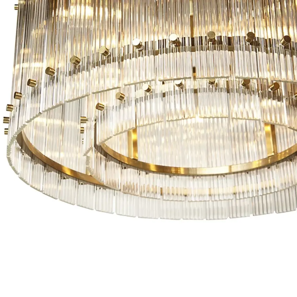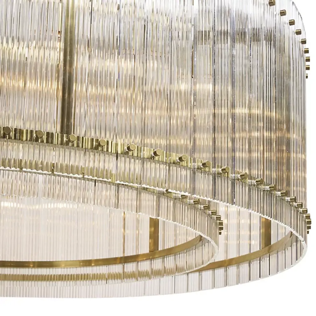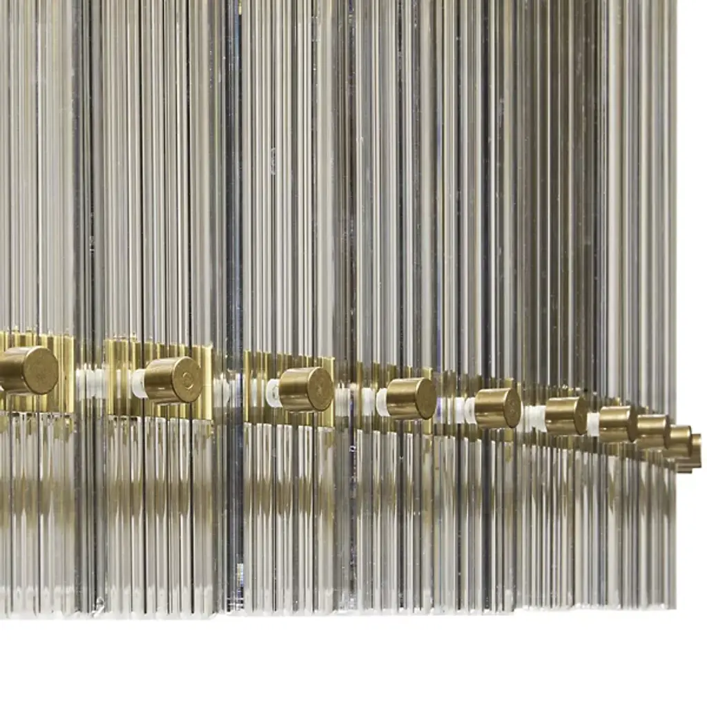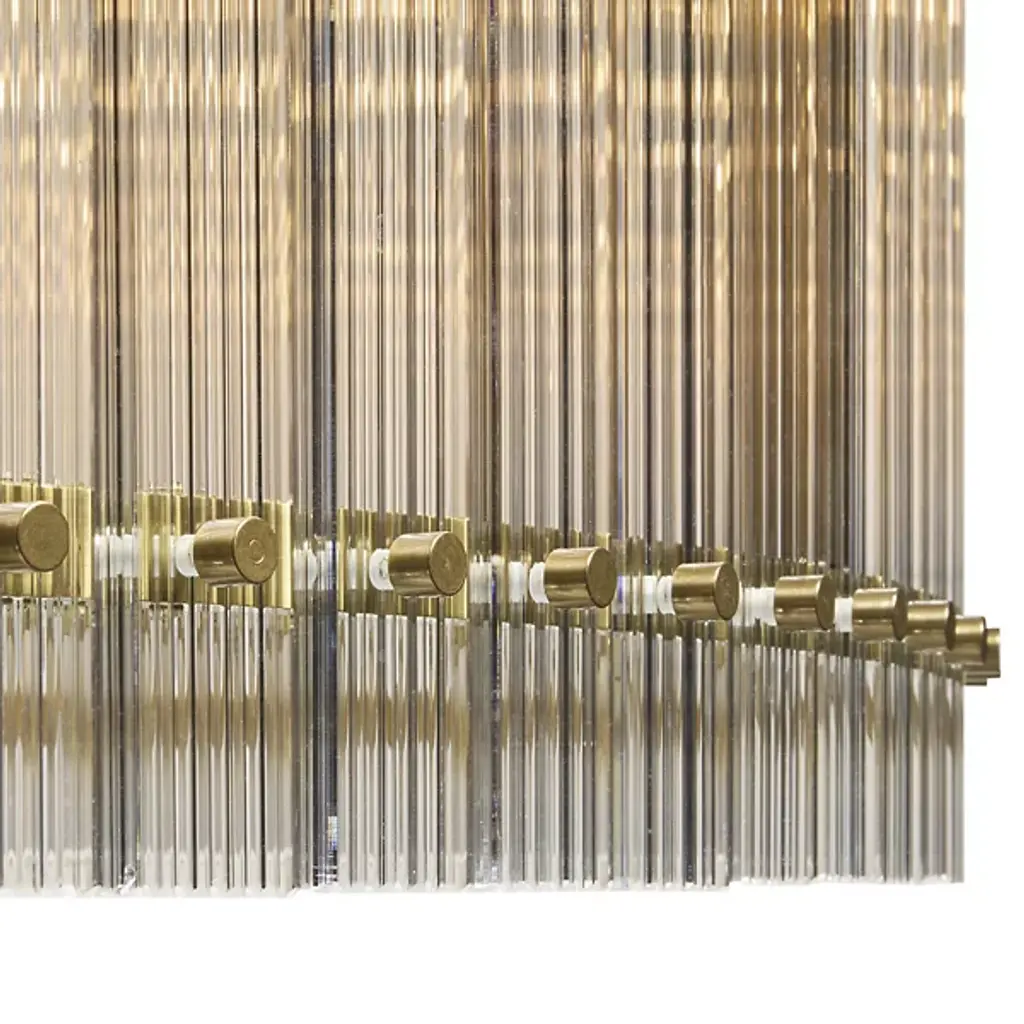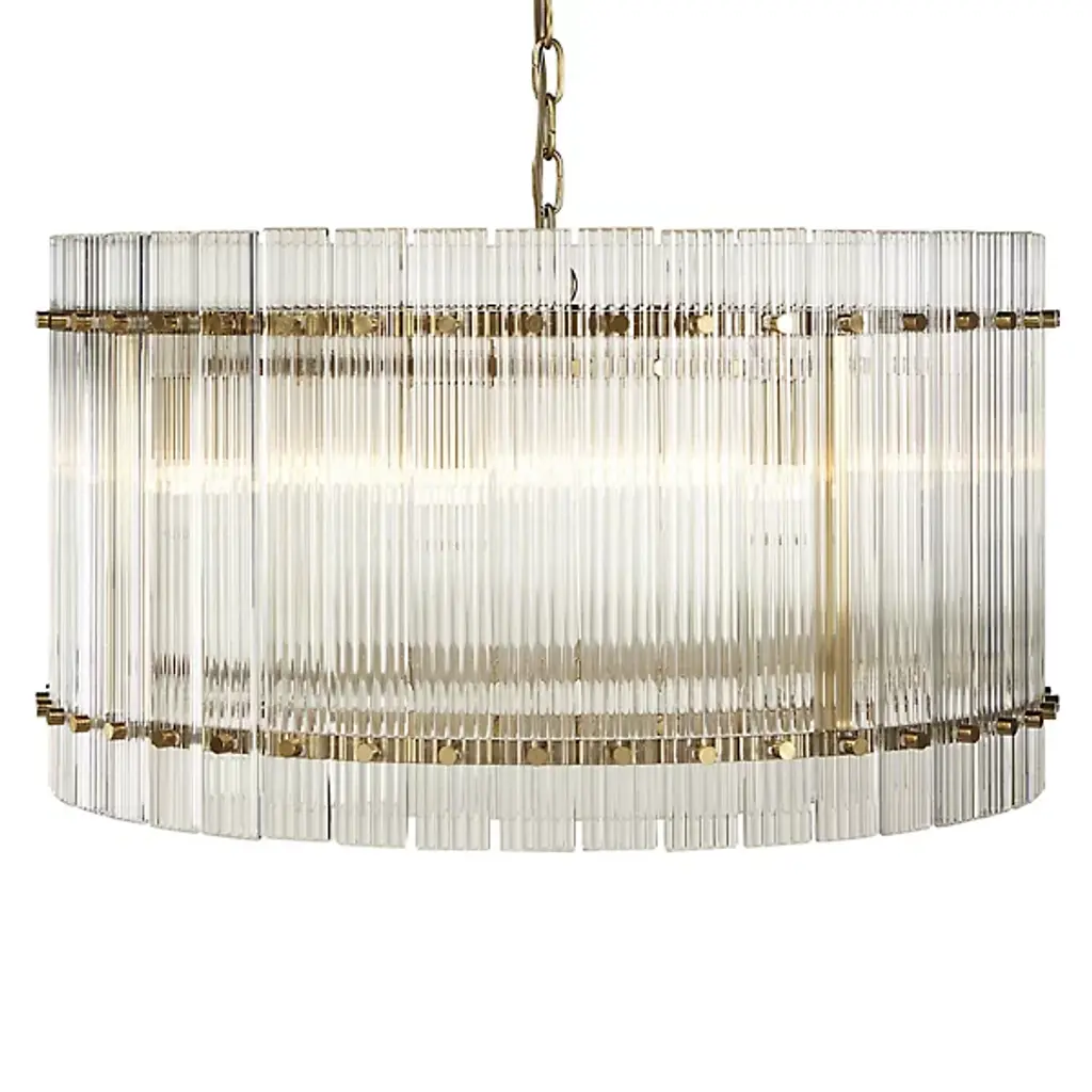The Kore Chandelier from Sunpan provides a stunning display of radiance to any space with this dazzling, eye-catching modern chandelier. Its large, clear, fluted glass design creates a beautiful play of light, while the complementing metal frame in a luxurious brass finish adds a touch of elegance and sophistication. Perfect for making a bold statement in dining rooms, living areas, or entryways, this chandelier combines contemporary style with timeless charm, transforming any room into a luminous and inviting space.