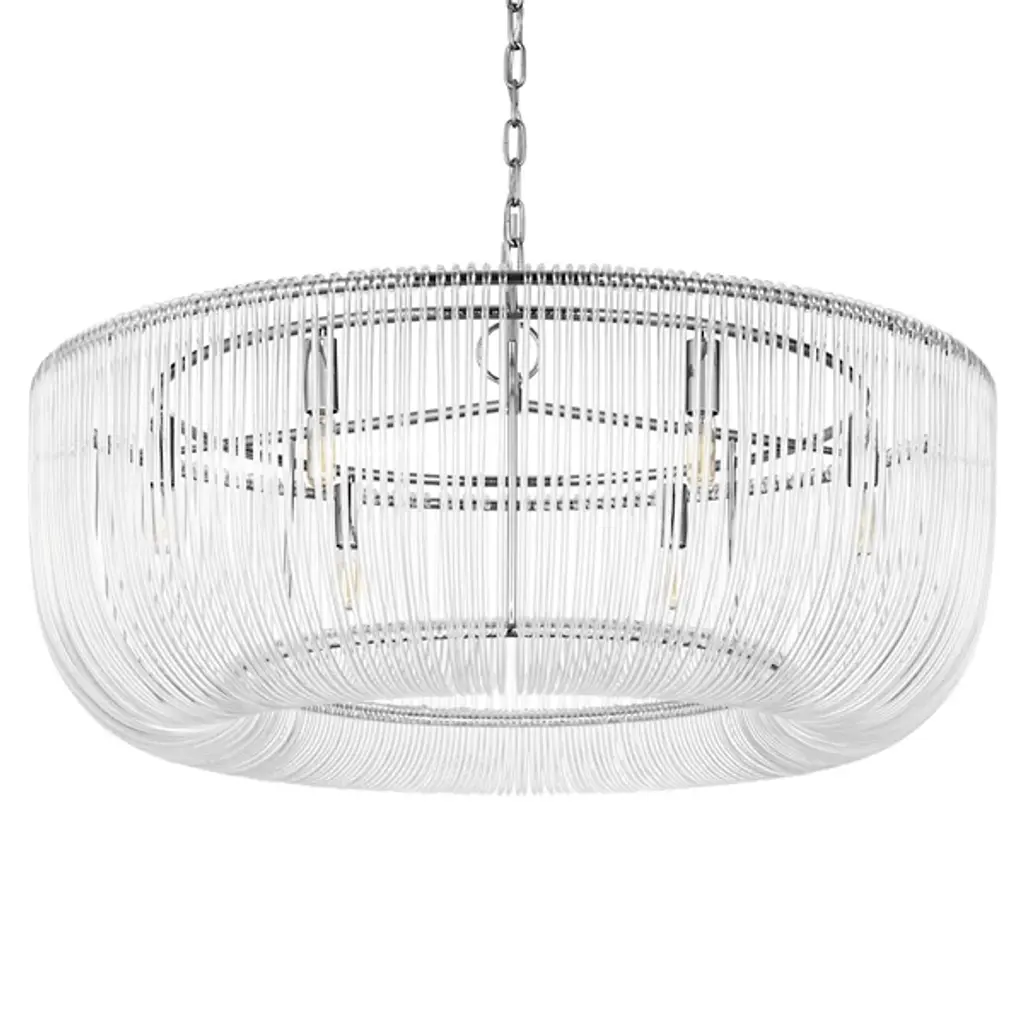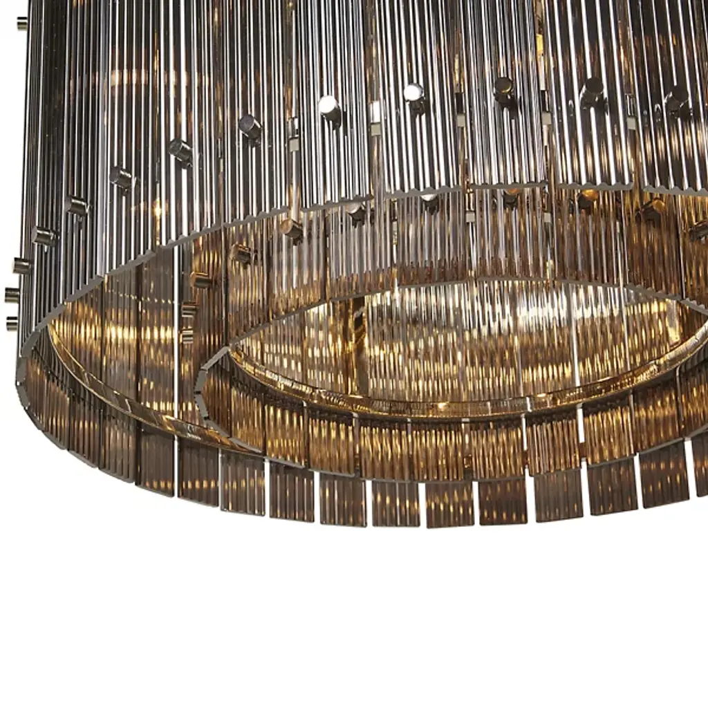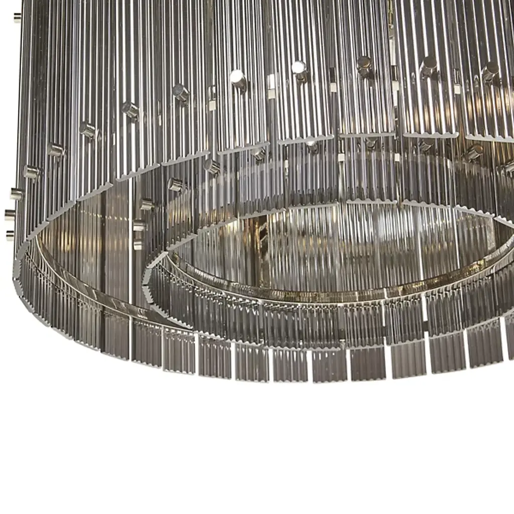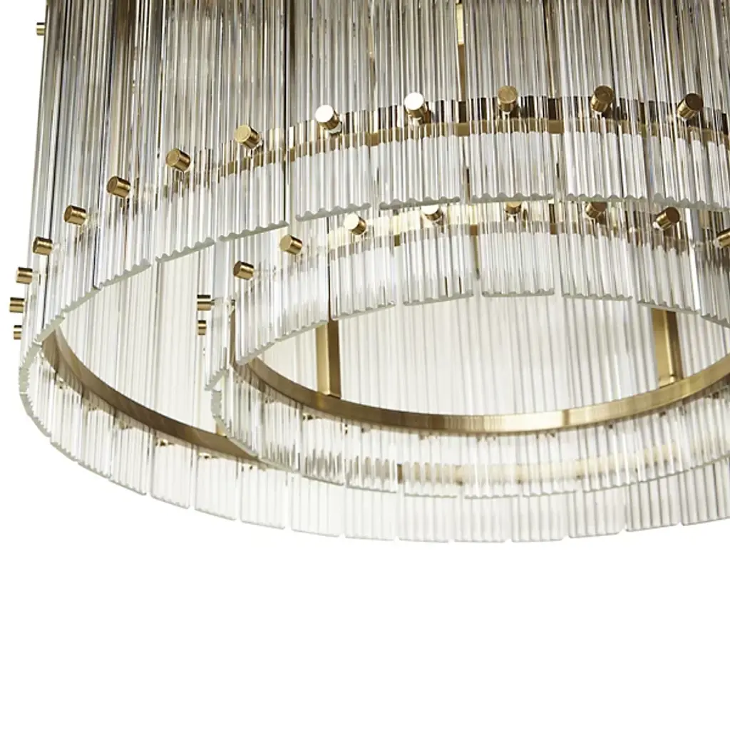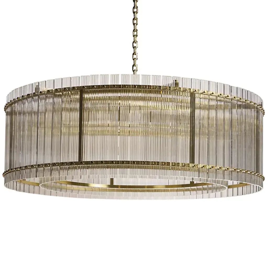 The Kore Chandelier from Sunpan provides a stunning display of radiance to any space with this dazzling, eye-catching modern chandelier. Its large, clear, fluted glass design creates a beautiful play of light, while the complementing metal frame in a luxurious brass finish adds a touch of elegance and sophistication. Perfect for making a bold statement in dining rooms, living areas, or entryways, this chandelier combines contemporary style with timeless charm, transforming any room into a luminous and inviting space.