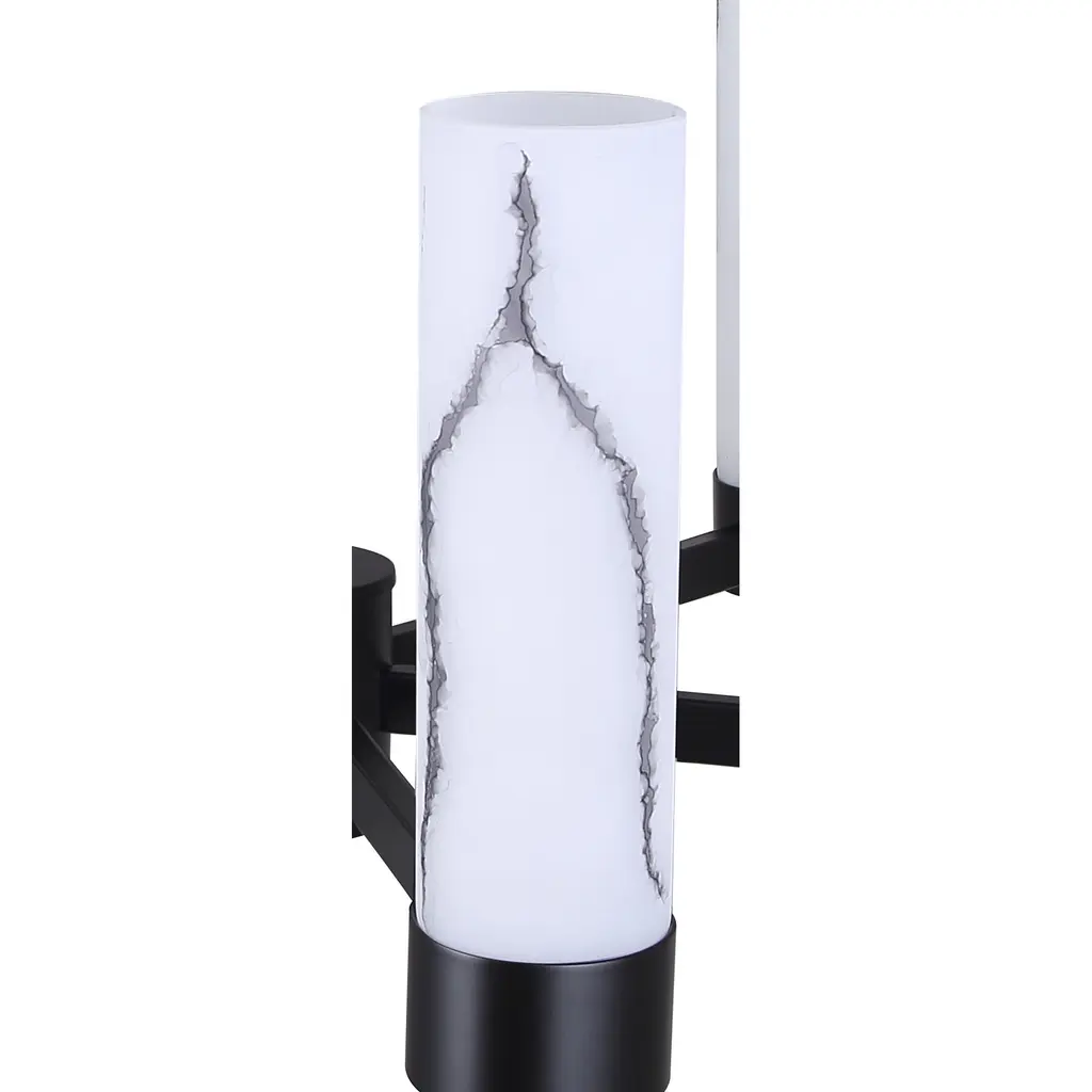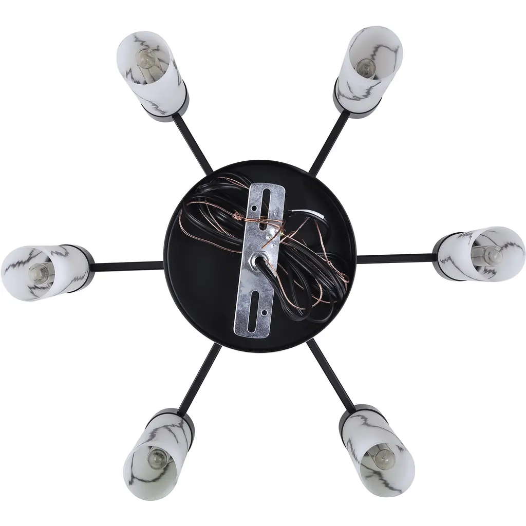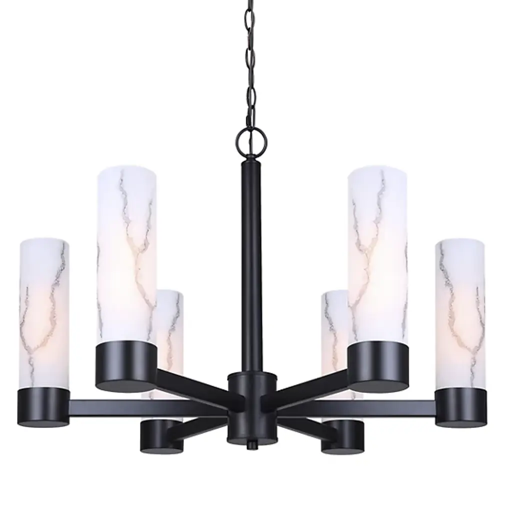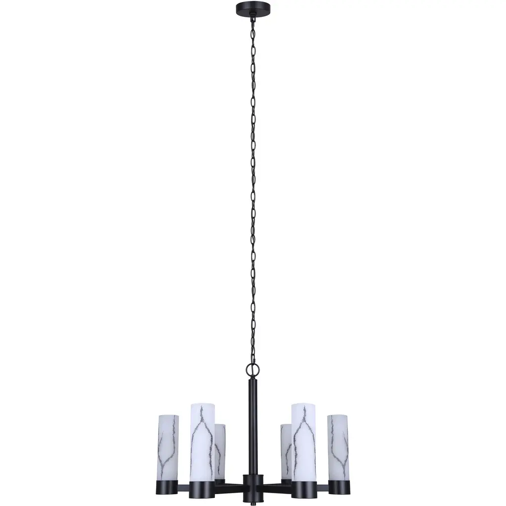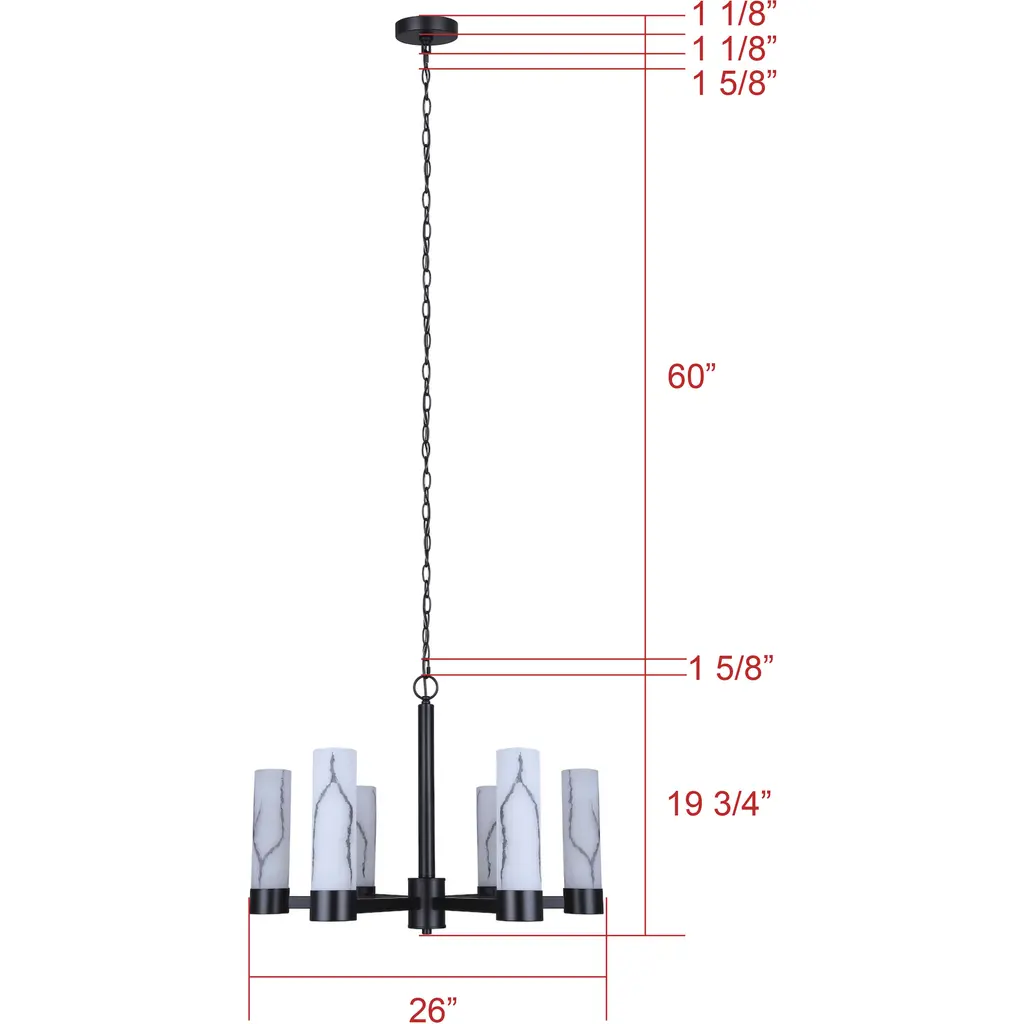 Introducing the KRISTELLA 6 Lt Chain Chandelier, a stunning addition to any modern or contemporary space. Featuring a Matte Black finish and grey marble glass shades, this chandelier exudes elegance and sophistication. With six lights and a capacity for 60W Type A bulbs, it provides ample illumination to brighten up your room. The adjustable height, measuring 26 inches in width and 19.75 inches in height, allows you to customize the chandelier to fit perfectly in your space, whether it's above a dining table, in a foyer, or over a kitchen island. Crafted with quality materials and designed with attention to detail, the KRISTELLA chandelier is sure to make a statement in your home decor.