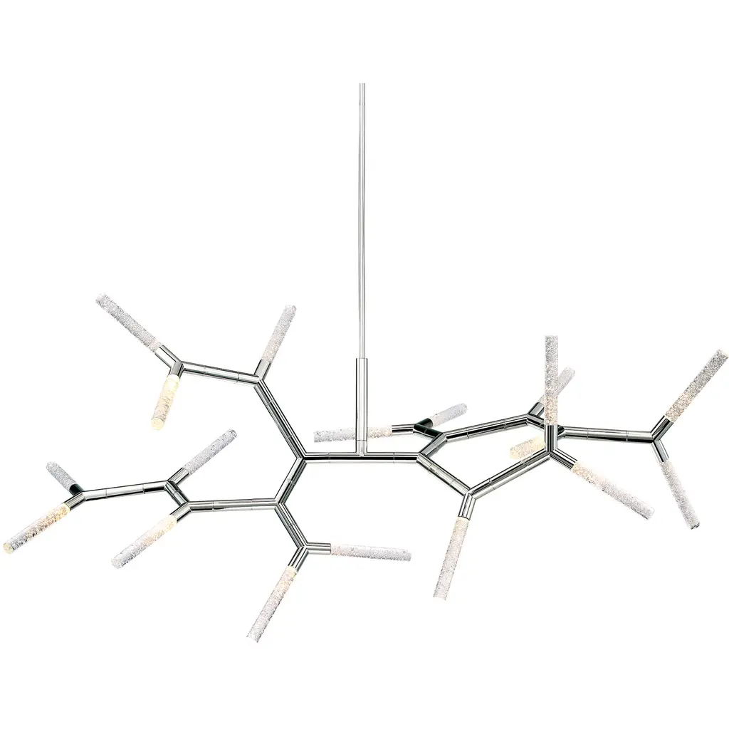 Like frozen branches shimmering with ice, Kryptonite takes inspiration from the beauty of nature, but its elegant geometrical form and the dazzling LED technology transcend the trees for a spectacular statement piece perfect in luxury homes, hotel atriums and opulent restaurants. Aluminum hardware finished in polished nickel is enjoined with sparkling rods of artisanal Piastra glass, and the arms are rotatable so you can personalize the look for whatever space you’re designing. Energy-efficient integrated LED's provide a long-lasting maintenance-free bright and even illumination.