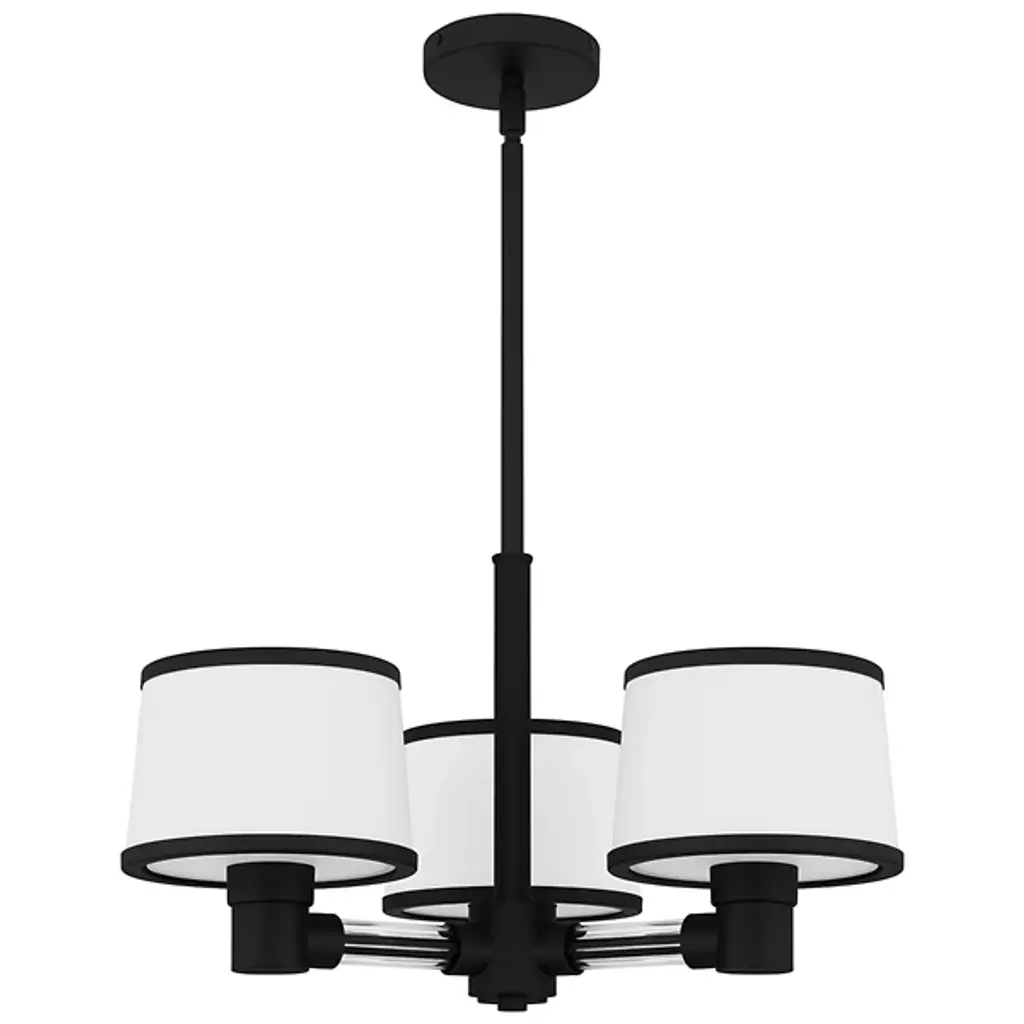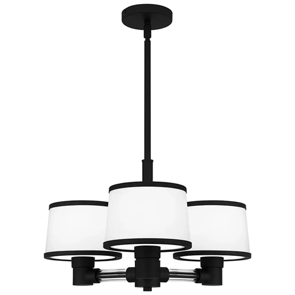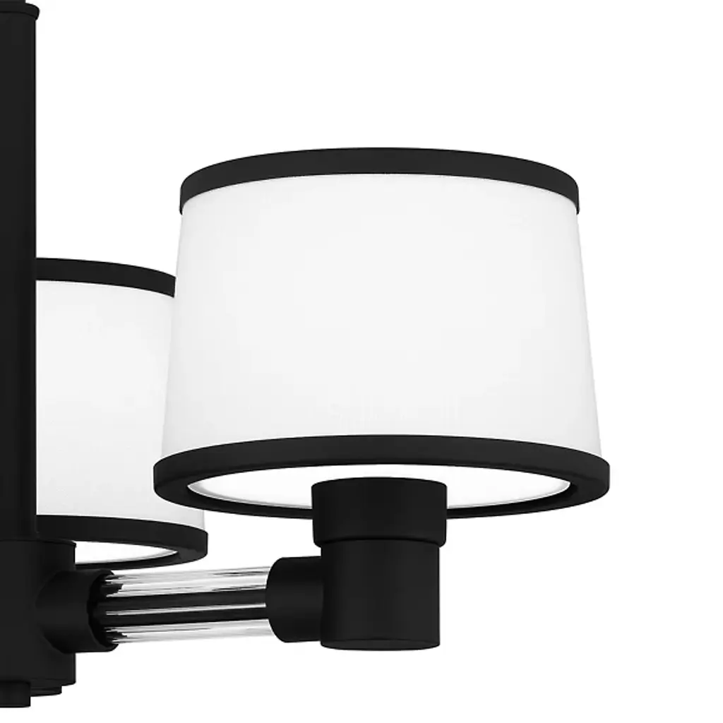 Discover the Kylen Chandelier from Quoizel, which marries classic design with a modern twist. It is adorned with drum shades featuring egg-shell fabric and contrasting black edges; this fixture exudes sophistication. Enhanced by a matte black finish, it offers versatile styling options, seamlessly complementing any space. Elevate your decor with the timeless elegance and contemporary allure of the Kylen Chandelier, a perfect fusion of traditional charm and modern sophistication.