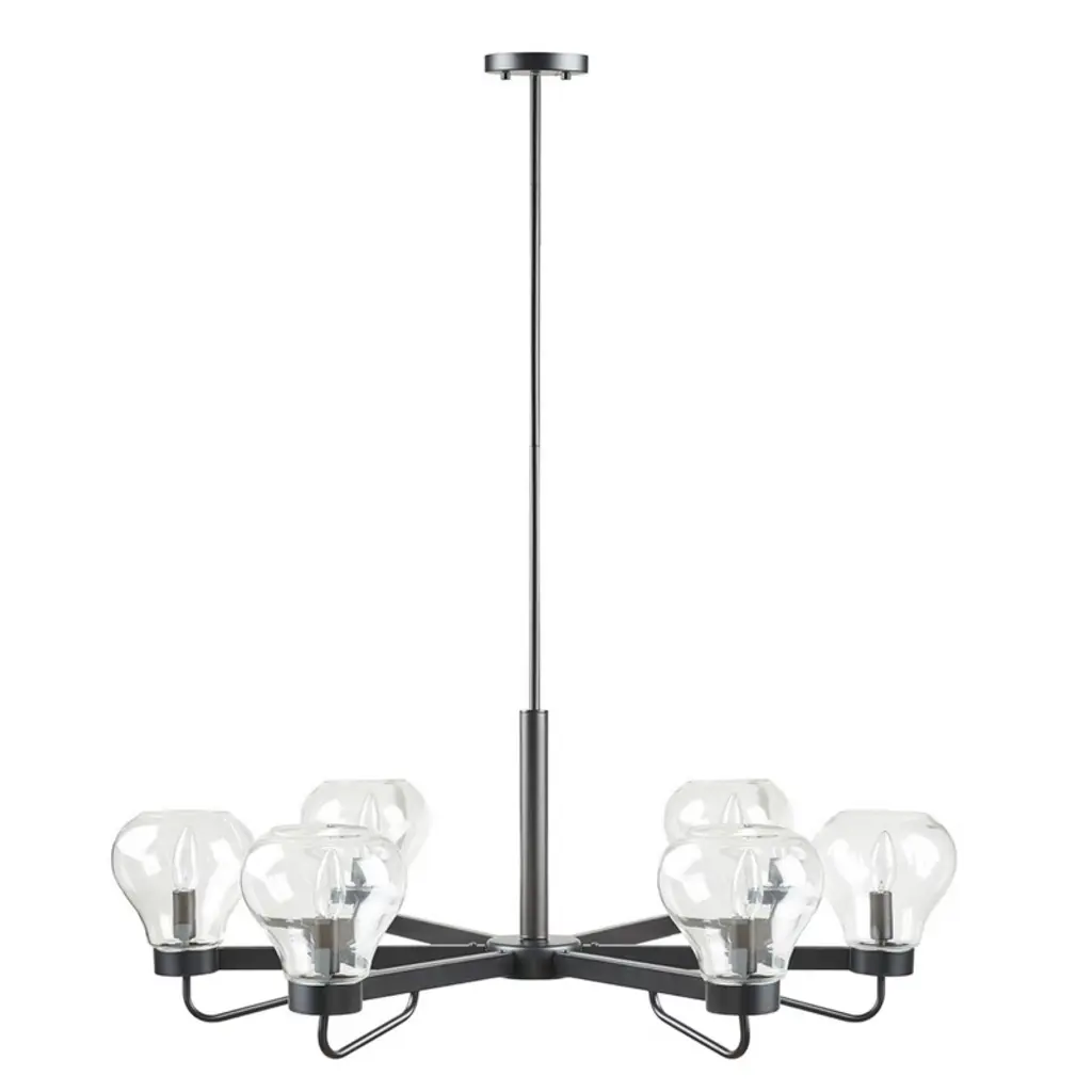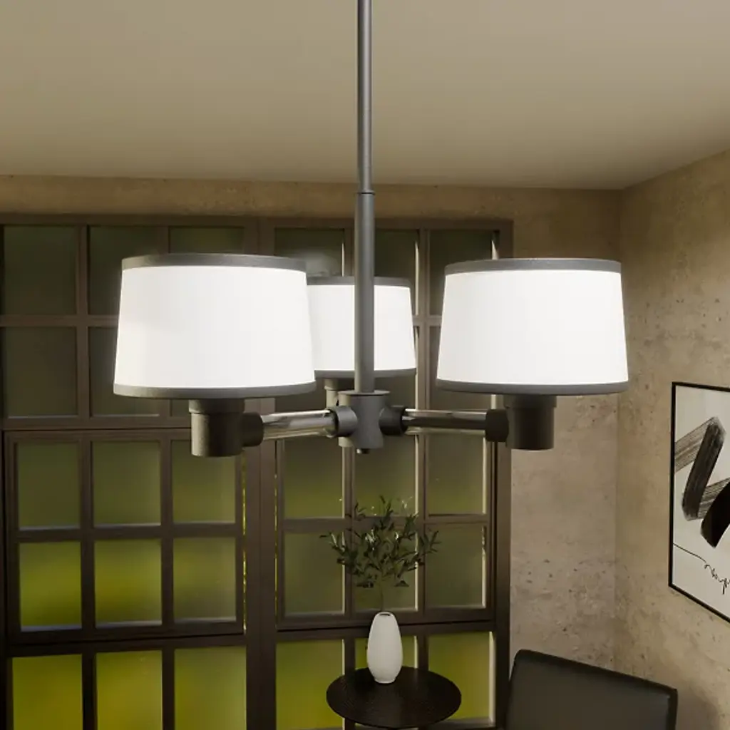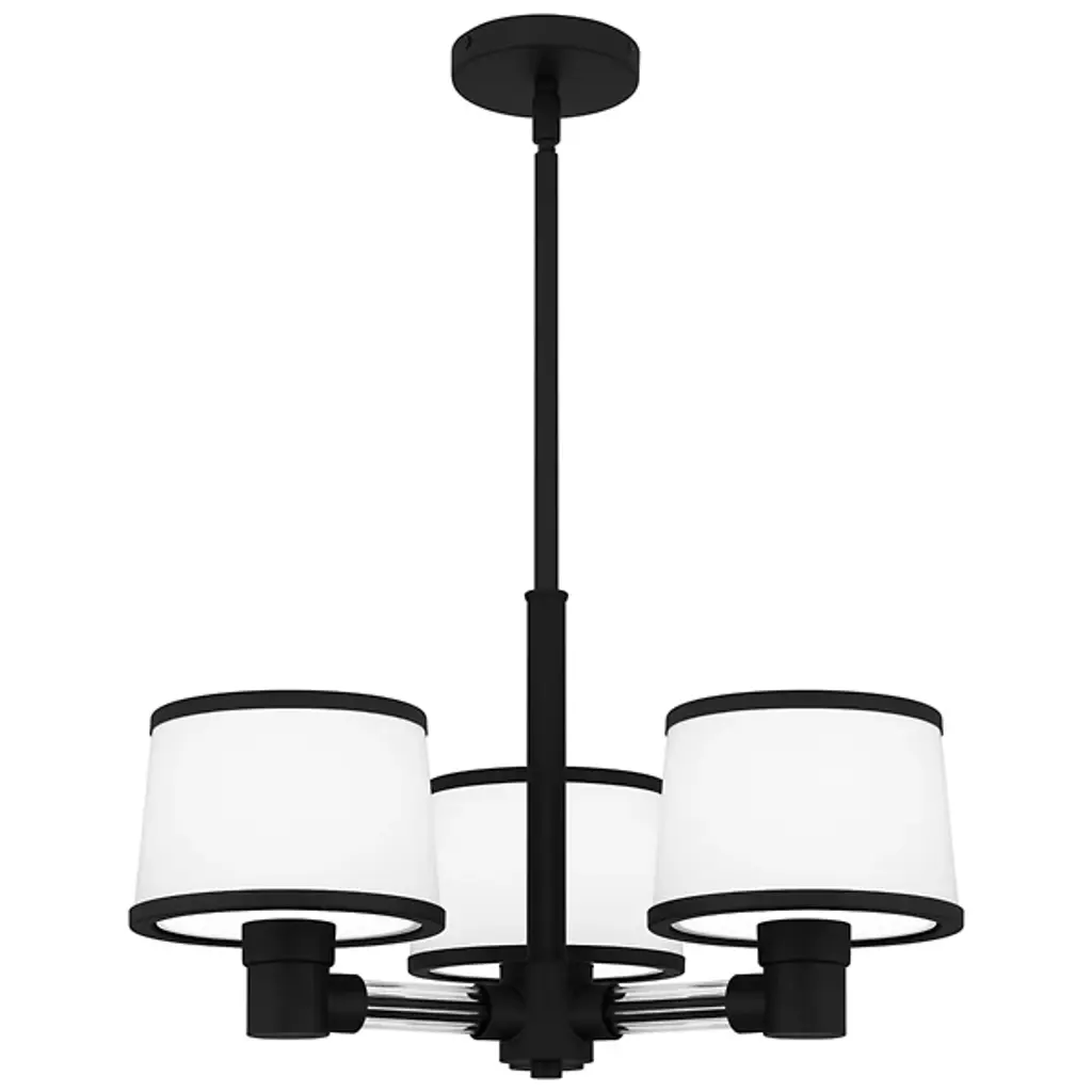 Discover the Kylen Chandelier from Quoizel, which marries classic design with a modern twist. It is adorned with drum shades featuring egg-shell fabric and contrasting black edges; this fixture exudes sophistication. Enhanced by a matte black finish, it offers versatile styling options, seamlessly complementing any space. Elevate your decor with the timeless elegance and contemporary allure of the Kylen Chandelier, a perfect fusion of traditional charm and modern sophistication.