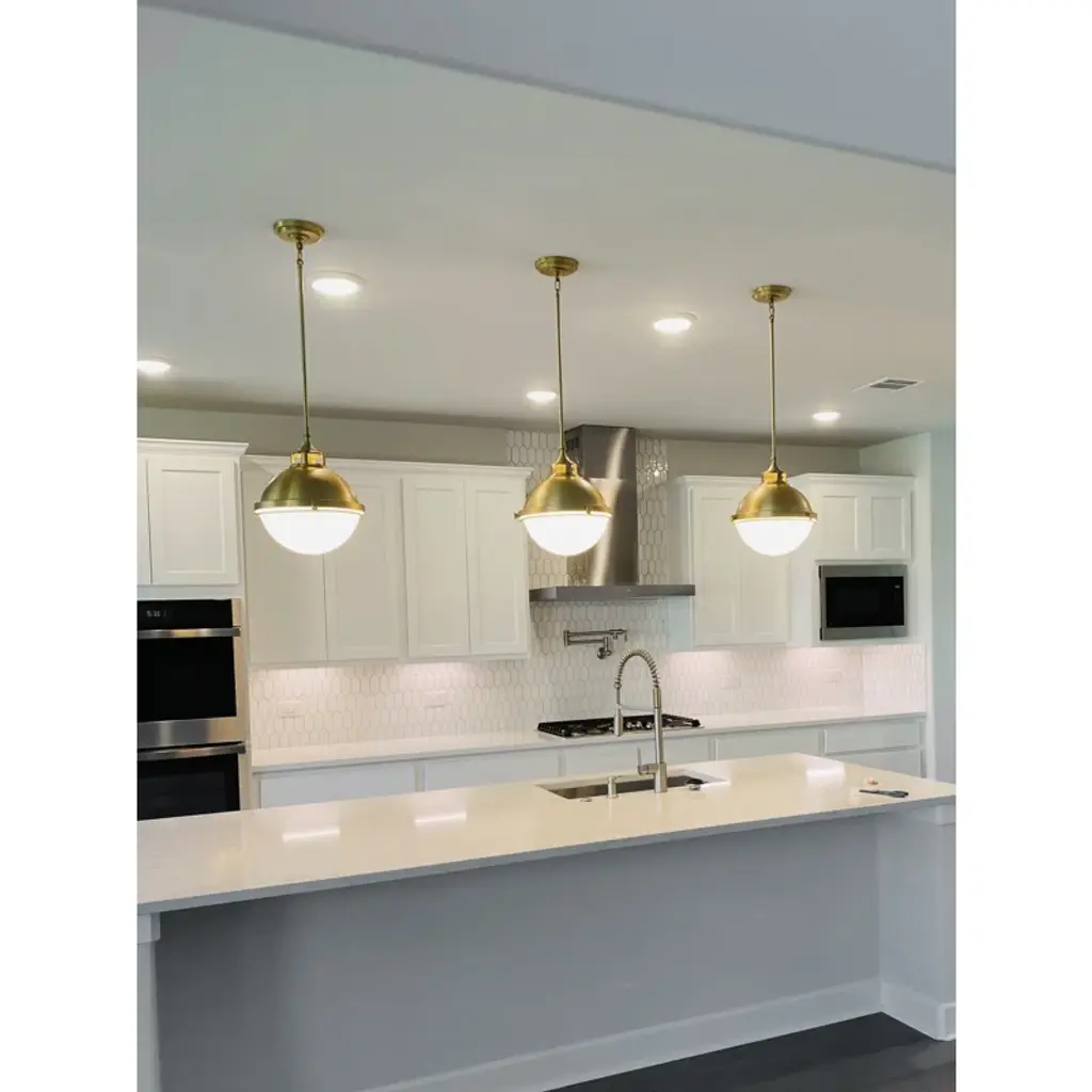 The perfect task lights, mood lights, and more, chandeliers are purpose-made for convenience and utility. Stylish too, this two-light chandelier brings rugged-yet-refined character to any room of the house. Its dome shade, downrod, and matching canopy are all wrought from metal, while a frosted glass globe shade completes the look with material contrast. It accommodates 100 W max. incandescent lamping; bulbs are not included. This fixture requires the hardwired installation and can be mounted on both standard and sloped ceilings. With one 6" and two 12" downrods included, this chandelier light’s hanging height adjusts to fit your space.
