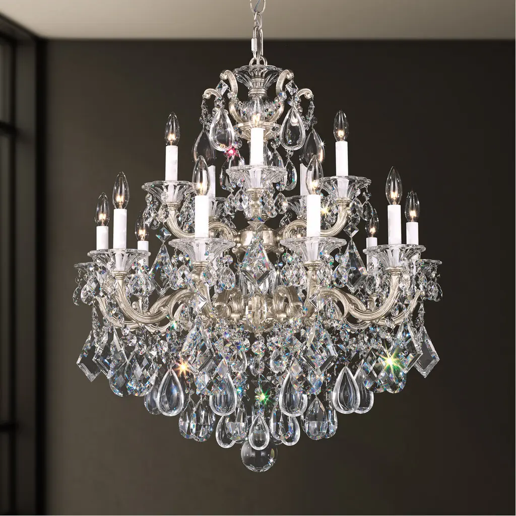 The soft curves, leaf-like motifs, rich crystal garlands and flower-shaped cups of La Scala evoke the sixteenth-century chandeliers of the Rococo. Its ornate arms and scrolls are cast by hand from Schonbek family molds.