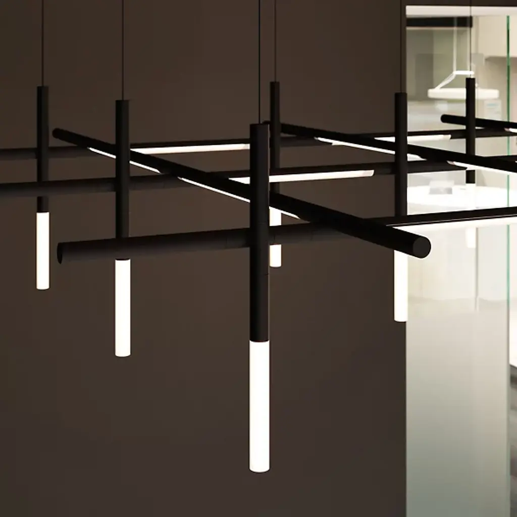 Perplexed by the lighting needs of a tall, large space? The Labyrinth Square LED Chandelier by SONNEMAN Lighting is the expansive, architectural solution you need. It has a precise, grid-like structure, comprised of numerous tubular rods held together with specialized cast pin connectors. Optical acrylic downlights and lenses fitted into the horizontal bars produce a bright and broad wash of LED light all around a large living room or lobby area. Impressively scaled all on its own, this modern chandelier was also designed to be modular, working together with others to create a truly dramatic, customized lighting statement.