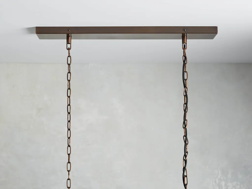 Lustrous, hand-antiqued mirrored-glass panes of various sizes make up the unique shape of our Moroccan-inspired Laila Chandelier. Finished in Antique Copper with just the right amount of shine, this stunning fixture will add soft, warm light to any room.
