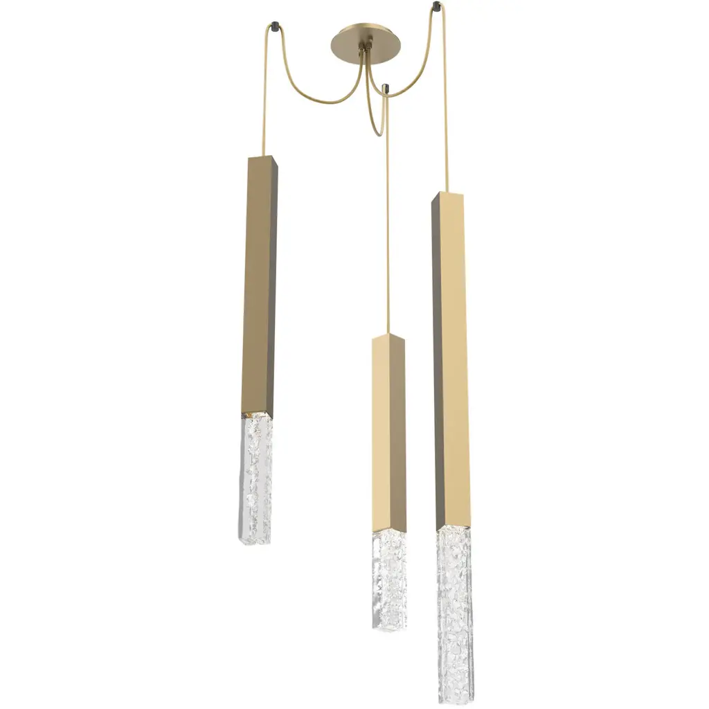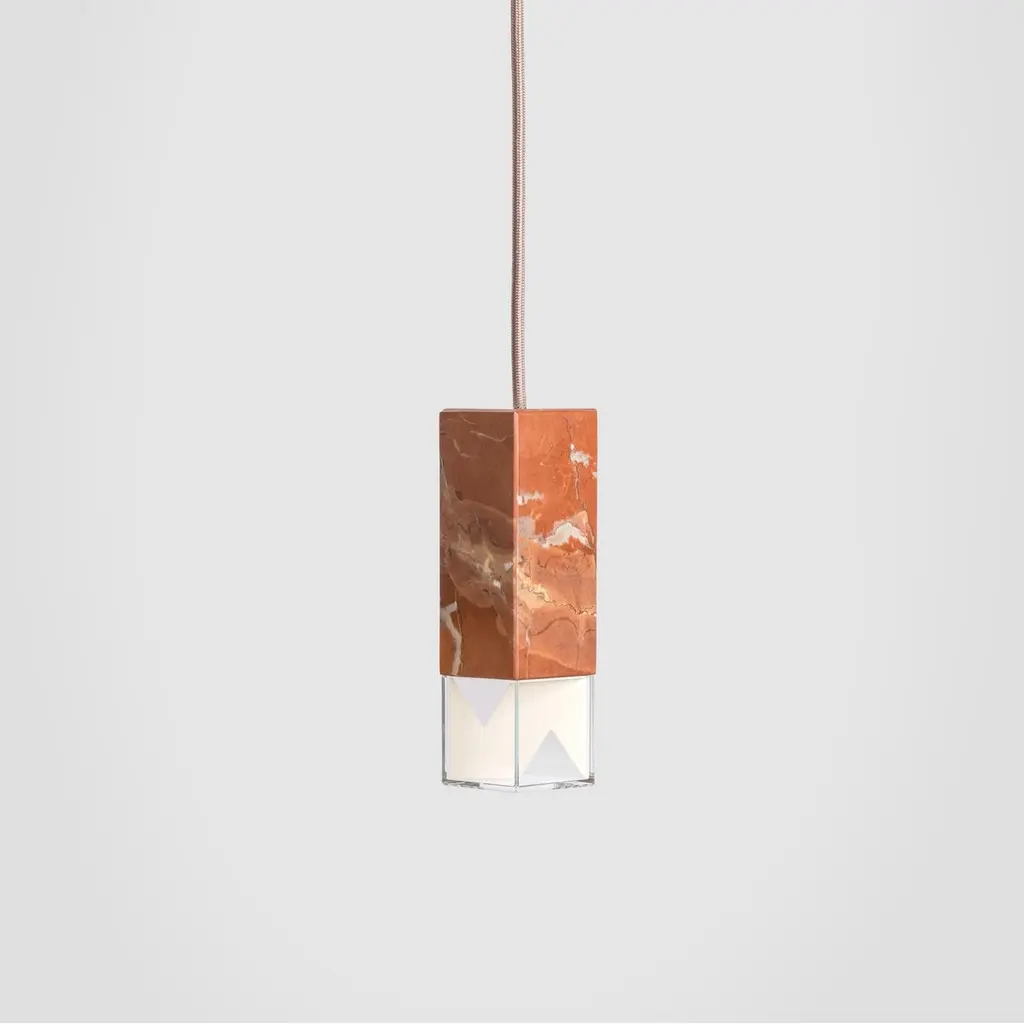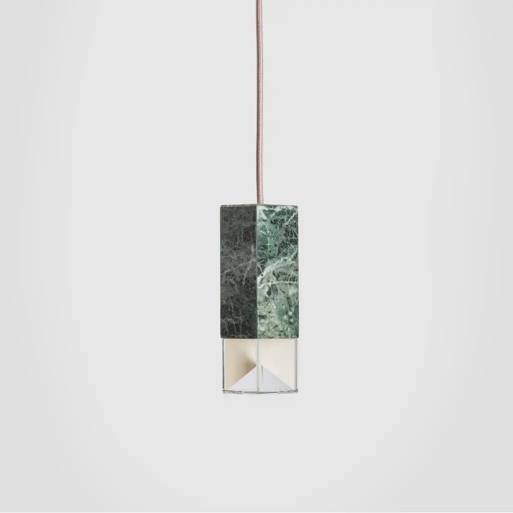 Lamp one trio chandelier in brass by FormaminimaLimited editionDimensions: 30 x 30 x H 68 cmMaterials: Red Collemandina, Green Alpes, Royal pink yellow Satin solid brass, crystal glass diffuser Limoges biscuit-finish porcelain sheetsUltra- thin anti-reflection crystal diffuserInside- diffuser Limoges biscuit-finish porcelain sheetsSatin brass ceiling rose H 5 x 5 x 5 cmLight source supplied per lamp:LED 1xG9 max 2.6W, 50-60Hz G9 connection320lm 2700K Rc 80 EU standard compliantVoltage: 220-240v (120v available upon request)Supplied accessories:Adjustable fabric cable: 2 x 0.75 Ø 6.2 mm L 2mMounting kit: screws UX Fischer screws (2x)Ø 6mm x 30mm, satin brass ceiling roseDecorative pendant lamp for indoor use.Both The Single Suspension series as well as The Chandelier series are characterized by the same endless passion for simplicity and attention for details that best representus. The inspiration, as well as the genesis of the entire design process, that led to the creation of the collection, belongs to the world of Porcelain, to its surface andstructural characteristics. Therefore, our project was born from the exploration of two-dimensional geometries on one hand, and on the other one, from the design intentaimed at researching lightness and thinness, bringing them to unforeseen results. As a consequence, this was a path subject to curiosity, to research, to the story of how alight beam may transform the features of a marble surface becoming translucent, and a porcelain sheet turning as thin as an eggshell.Formaminima is an emerging brand within the Italian Design panorama, prone to exploring the concept of object itself, in the field of lighting and product designin its broadest sense. This exploration starts in the first instance from the tradition, from the artisan mastery and that making full of charm, care, and perseverance.Each project is in fact crafted in those same places where the know-how is handed down and kept for generations, exclusively in our territory. Carefully selected workshops, ateliers, and studios become our precious partners in the creation of every single piece, conceived and designed by us. Therefore, in this latter, multiple knowledge is merged, especially that linked to high-quality materials, production processes, and an innovative aesthetic. Thus to achievewhat for us represents a contemporary Design Sleek Poetry.We create value through the masterly realization of unique pieces, as well as minimizing the intermediation between the Design product and its audience. Hence our projects result in the outcome of a direct collaboration between our designers and the excellence of Italian craftsmanship, along with its valuable know-how. To this end, we believe that a slow design process, together with its time of thought andresearch, is essential for what we believe Good Design may be.So this latter, passing from the inspiration to the concrete realization of each of our design creation, arrives directly to the customer.