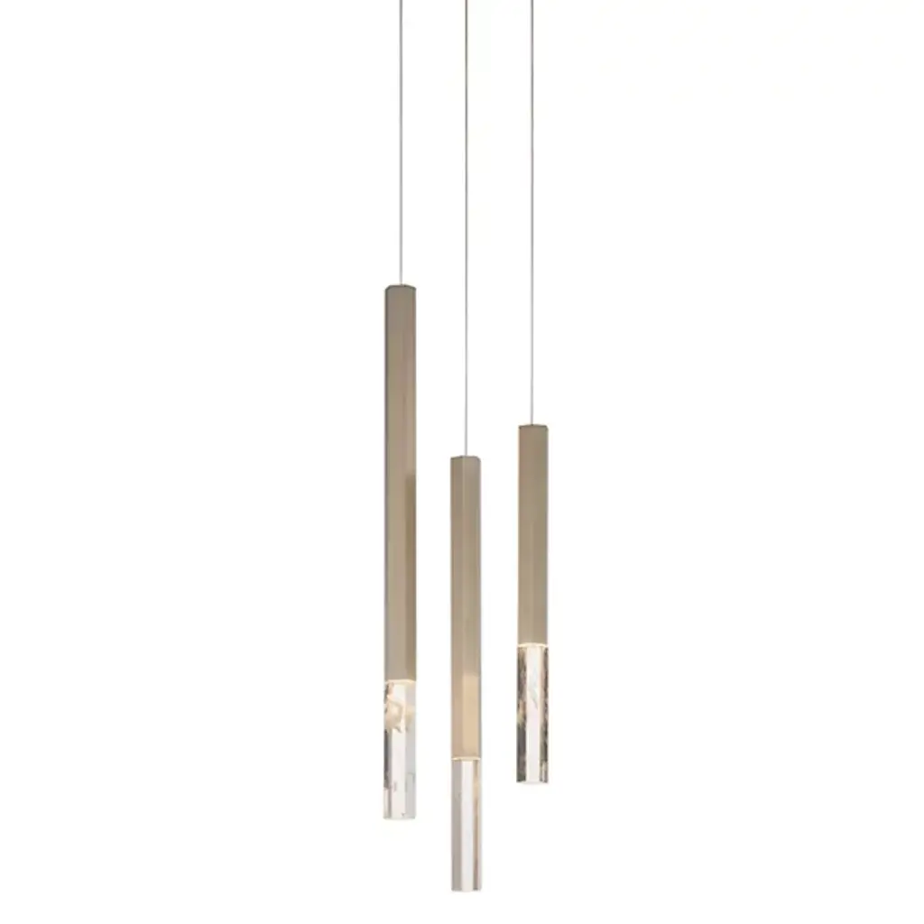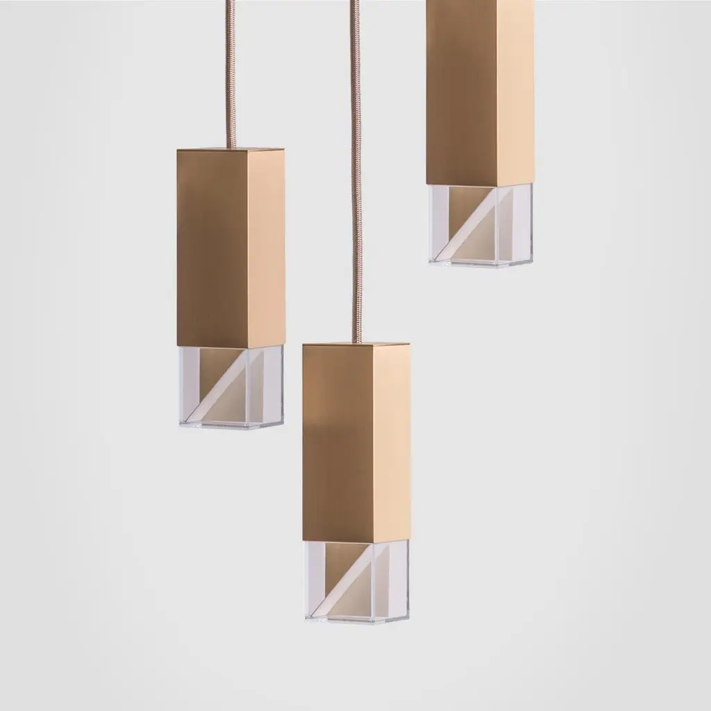 Lamp one trio chandelier in marble by FormaminimaDimensions: 30 x 30 x H 68 cmMaterials: Lamp body in marbleUltra- thin anti-reflection crystal diffuserInside- diffuser Limoges biscuit-finish porcelain sheetsSatin brass ceiling rose H 5 x 5 x 5 cmLight source supplied per lamp:LED 1xG9 max 2.6W, 50-60Hz G9 connection320lm 2700K Rc 80 EU standard compliantVoltage: 220-240v (120v available upon request)Supplied accessories:Adjustable fabric cable: 2 x 0.75 Ø 6.2 mm L 2mMounting kit: screws UX Fischer screws (2x)Ø 6mm x 30mm, satin brass ceiling roseDecorative pendant lamp for indoor use.Both The Single Suspension series as well as The Chandelier series are characterized by the same endless passion for simplicity and attention for details that best representus. The inspiration, as well as the genesis of the entire design process, that led to the creation of the collection, belongs to the world of Porcelain, to its surface andstructural characteristics. Therefore, our project was born from the exploration of two-dimensional geometries on one hand, and on the other one, from the design intentaimed at researching lightness and thinness, bringing them to unforeseen results. As a consequence, this was a path subject to curiosity, to research, to the story of how alight beam may transform the features of a marble surface becoming translucent, and a porcelain sheet turning as thin as an eggshell.Formaminima is an emerging brand within the Italian Design panorama, prone to exploring the concept of object itself, in the field of lighting and product designin its broadest sense. This exploration starts in the first instance from the tradition, from the artisan mastery and that making full of charm, care, and perseverance.Each project is in fact crafted in those same places where the know-how is handed down and kept for generations, exclusively in our territory. Carefully selected workshops, ateliers, and studios become our precious partners in the creation of every single piece, conceived and designed by us. Therefore, in this latter, multiple knowledge is merged, especially that linked to high-quality materials, production processes, and an innovative aesthetic. Thus to achievewhat for us represents a contemporary Design Sleek Poetry.We create value through the masterly realization of unique pieces, as well as minimizing the intermediation between the Design product and its audience. Hence our projects result in the outcome of a direct collaboration between our designers and the excellence of Italian craftsmanship, along with its valuable know-how. To this end, we believe that a slow design process, together with its time of thought andresearch, is essential for what we believe Good Design may be.So this latter, passing from the inspiration to the concrete realization of each of our design creation, arrives directly to the customer.