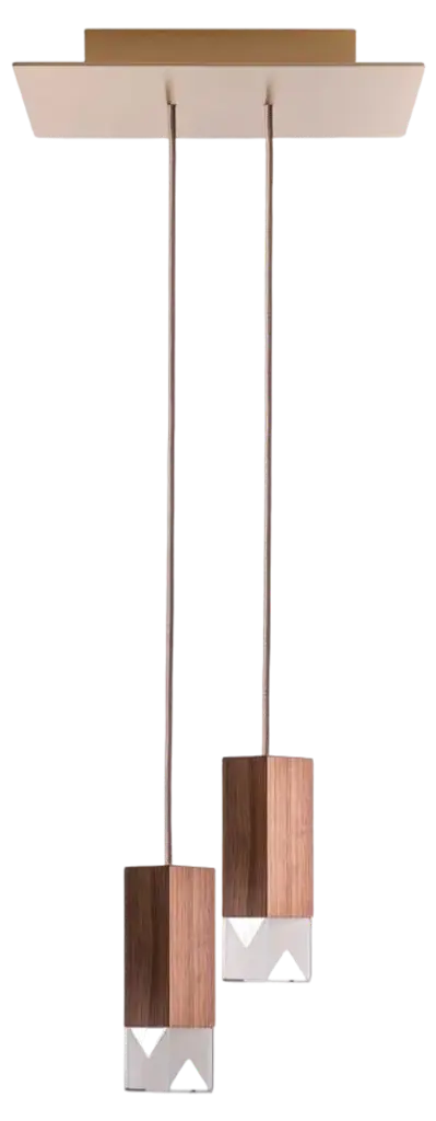 Lamp one wood duet chandelier by FormaminimaDimensions: D30 x W30 x H 68 cm (adjustable height).Materials: Body lamps: handcrafted solid Canaletto walnut wood, matt oil finishCrystal diffusers, Limoges biscuit-finish porcelain sheets.Ceiling rose of solid brass, satin matt finish.All our lamps can be wired according to each country. If sold to the USA it will be wired for the USA for instance. Please contact us.Light source supplied per lamp:LED 1xG9 max 2.6W, 50-60HzG9 connection 320lm 2700K Rc 80Voltage: 220-240v110-120v available upon requestCertifications: CEWeight: Approx. 4 KgsSupplied accessories:Adjustable fabric cable per lamp:2x0,75 Ø 6,2mm min. lenght: 2mMounting kit: screws (4x) UX FischerØ 6mm x 30mm, (1x) Anchor FischerIndoor decorative lighting, handmade in ItalyFormaminima is an emerging brand within the Italian Design panorama, prone to exploring the concept of object itself, in the field of lighting and product design in its broadest sense. This exploration starts in the first instance from the tradition, from the artisan mastery and that making full of charm, care, and perseverance.Each project is in fact crafted in those same places where the know-how is handed down and kept for generations, exclusively in our territory. Carefully selected workshops, ateliers, and studios become our precious partners in the creation of every single piece, conceived and designed by us. Therefore in this latter, multiple knowledge is merged, especially that linked to high-quality materials, production processes, and an innovative aesthetic. Thus to achieve what for us represents a contemporary Design sleek Poetry.We create value through the masterly realization of unique pieces, as well as minimizing the intermediation between the Design product and its audience. Hence our projects result in the outcome of a direct collaboration between our designers and the excellence of Italian craftsmanship, along with its valuable know-how. To this end, we believe that a slow design process, together with its time of thought and research, is essential for what we believe good design may be.So this latter, passing from the inspiration to the concrete realization of each of our design creation, arrives directly to the customer.