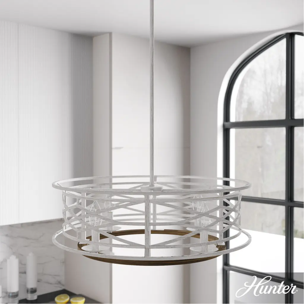 Regency-inspired design with modern influences. The Langwood 4-light chandelier is a perfect harmony of wood-inspired finishes and iron work detailing. This fixture creates a focal point in any formal or transitional space with its intricate Chippendale pattern and iron detailing. Create a seamless design that expresses your style by pairing this round chandelier with other fixtures from the complete Langwood Collection.