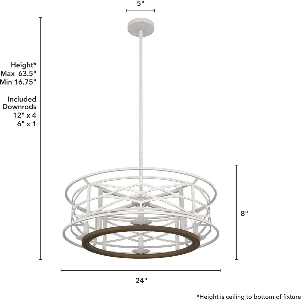 Langwood 4 Light 24 Inch Distressed White And Chestnut Chandelier Ceiling Light