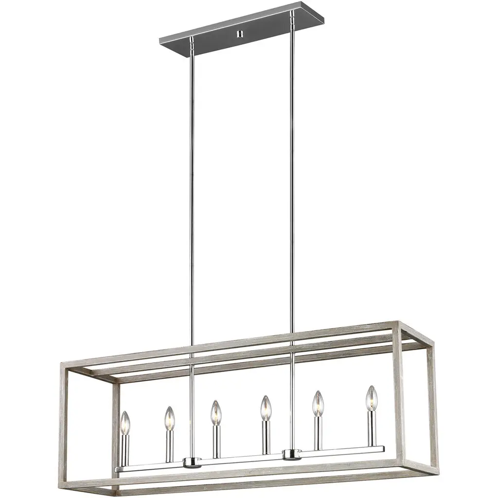 Langwood 6 Light 40.25 Inch Distressed White Linear Chandelier Ceiling Light