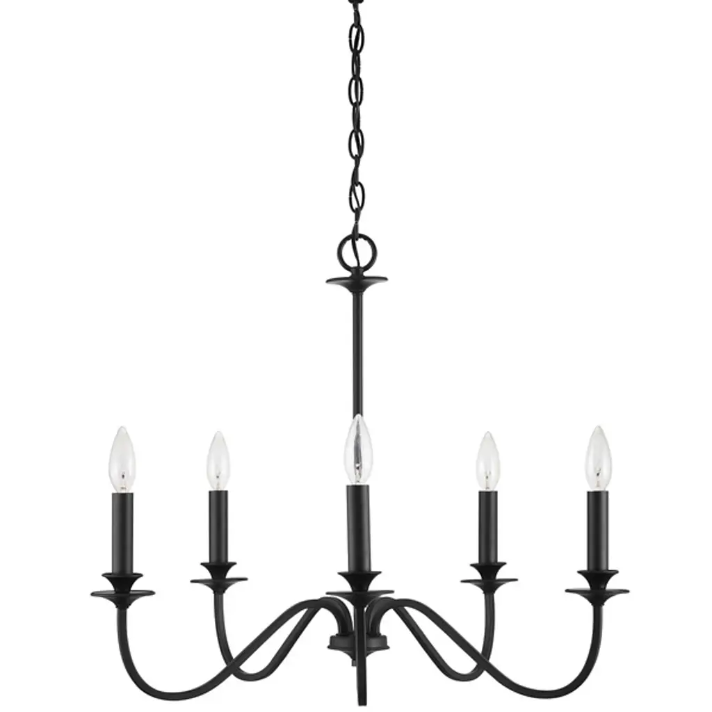 Bring an open retro accent to your inside spaces with the Lanne Chandelier from Generation Lighting, formerly known as Sea Gull Lighting, A slender transitional design suspended from a stepped circular canopy via a hybrid chain and stem arrangement, it uses a disc hub at the stem’s base accented by a small spherical finial to support a series of slender, upward-curving arms. Each arm terminates in an open, upward-facing candelabra-style socket that calls to mind older styles, while a wet rating allows it to be placed in any indoor environment.