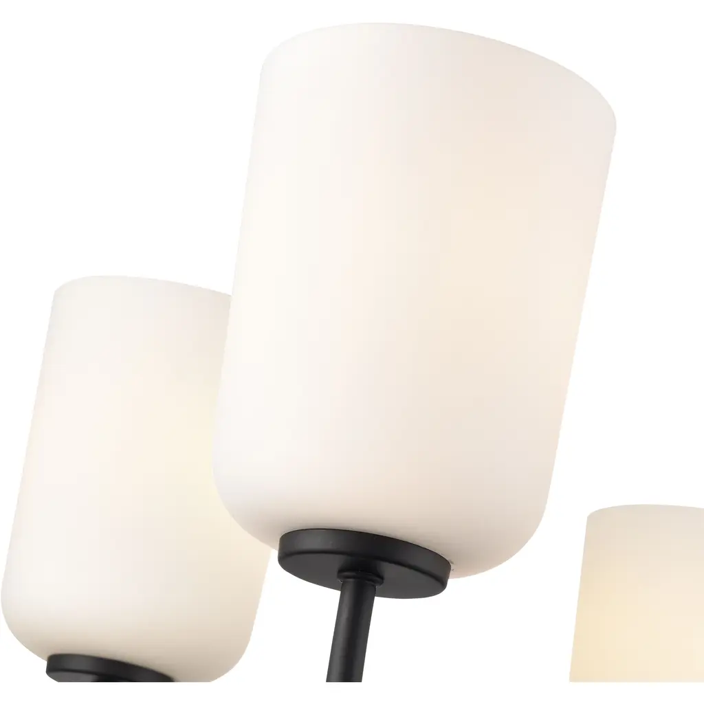 The Laphia Family features sleek lines, a graceful profile, and brilliant white, bell-shaped glass shades creating an ambient glow. The Family is available as sconce, chandelier, pendant, mini-pendant, semi-flush mount, flush mount, and an excellent vanity task light. Perfect for any interior plan from Craftsmen to modern farmhouse, these fixtures are finished in stylish brushed nickel, matte black, or modern gold.