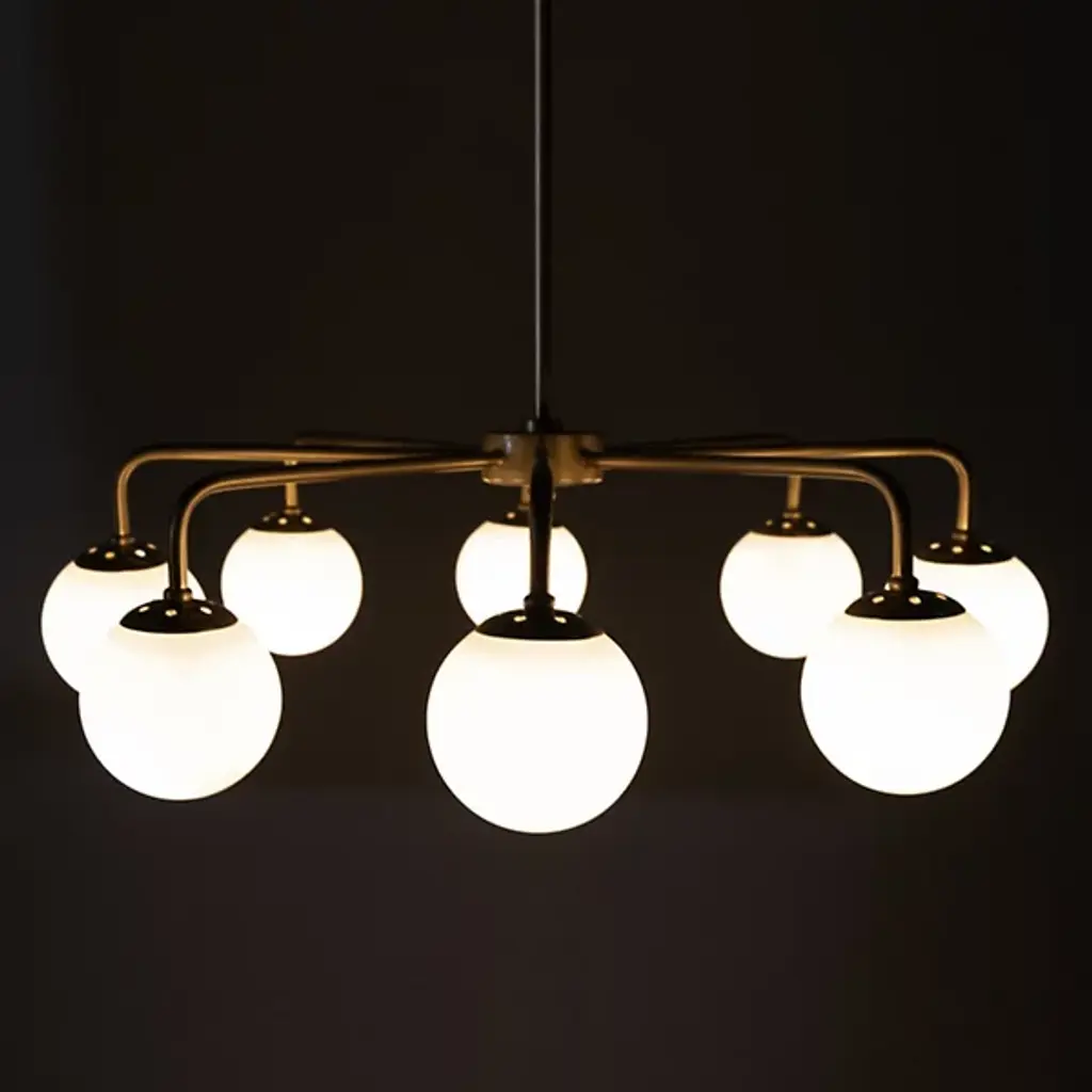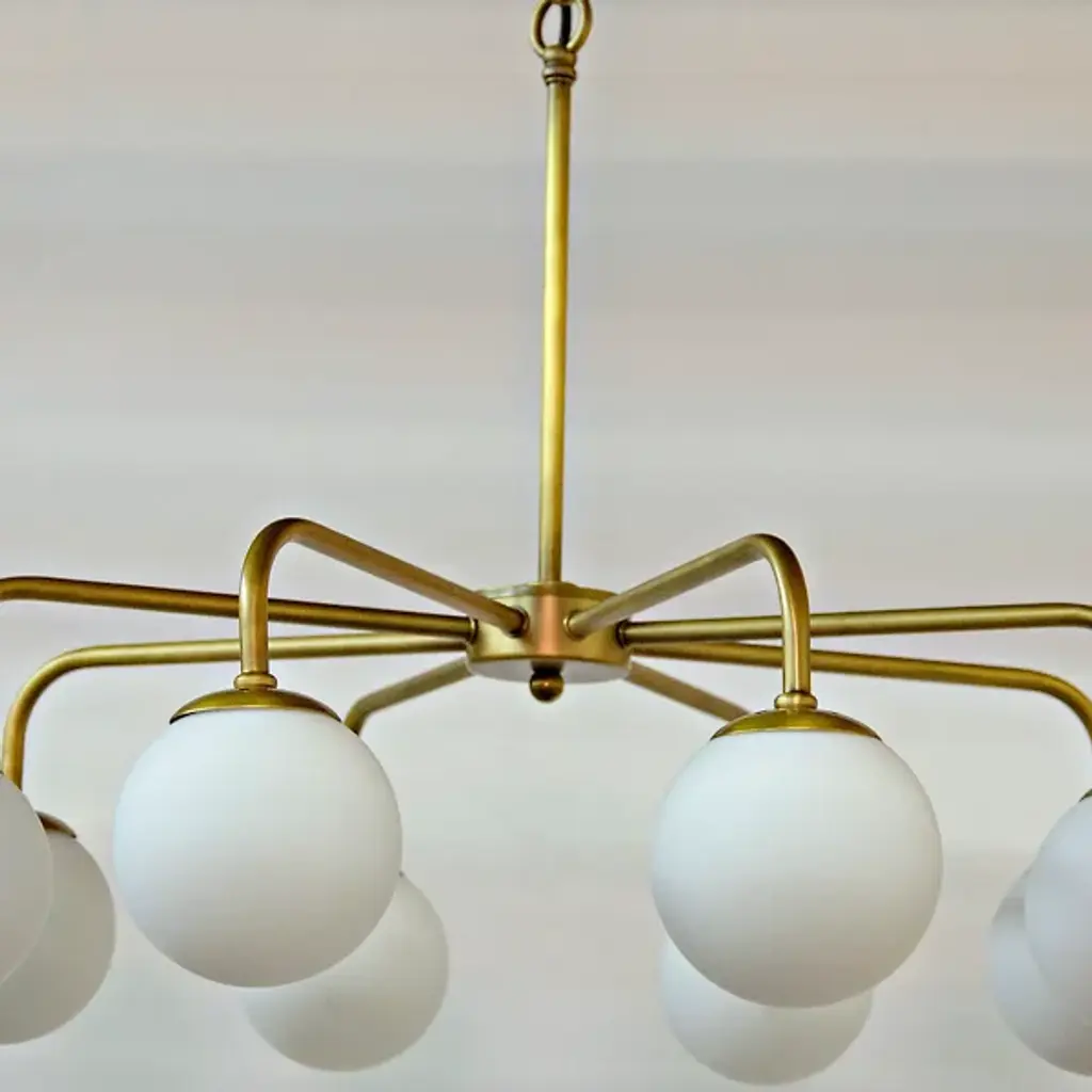 The Larenta Chandelier from Noir is a fusion of mid-century modern aesthetics and retro-futuristic design, creating a captivating piece. Crafted from antique brass finished metal, it features sleek lines that gracefully suspend eight radiant orbs. The result is a contemporary reimagining of the classic chandelier, adding a touch of vintage charm with a forward-looking twist. Illuminate your space with this striking luminary that seamlessly bridges the gap between past and future design.
