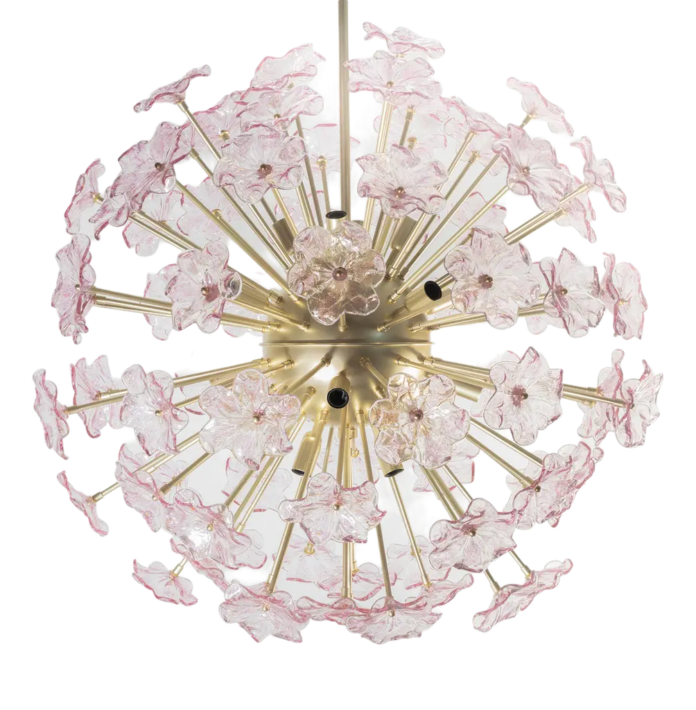 Large Flower Power Fuchsia Magnolia Round Chandelier With 24k Gold Pipes From Vgnewtrend, Italy