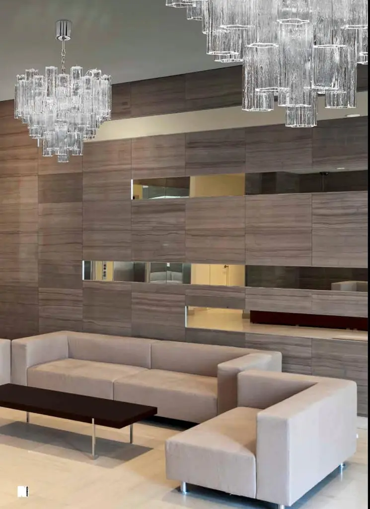 Amazing chandelier with 78 clear tronchi Murano glasses 20 cm long.Nickel-plated metal structure on four levels. Eight E 27 light bulbs Price is \ item.