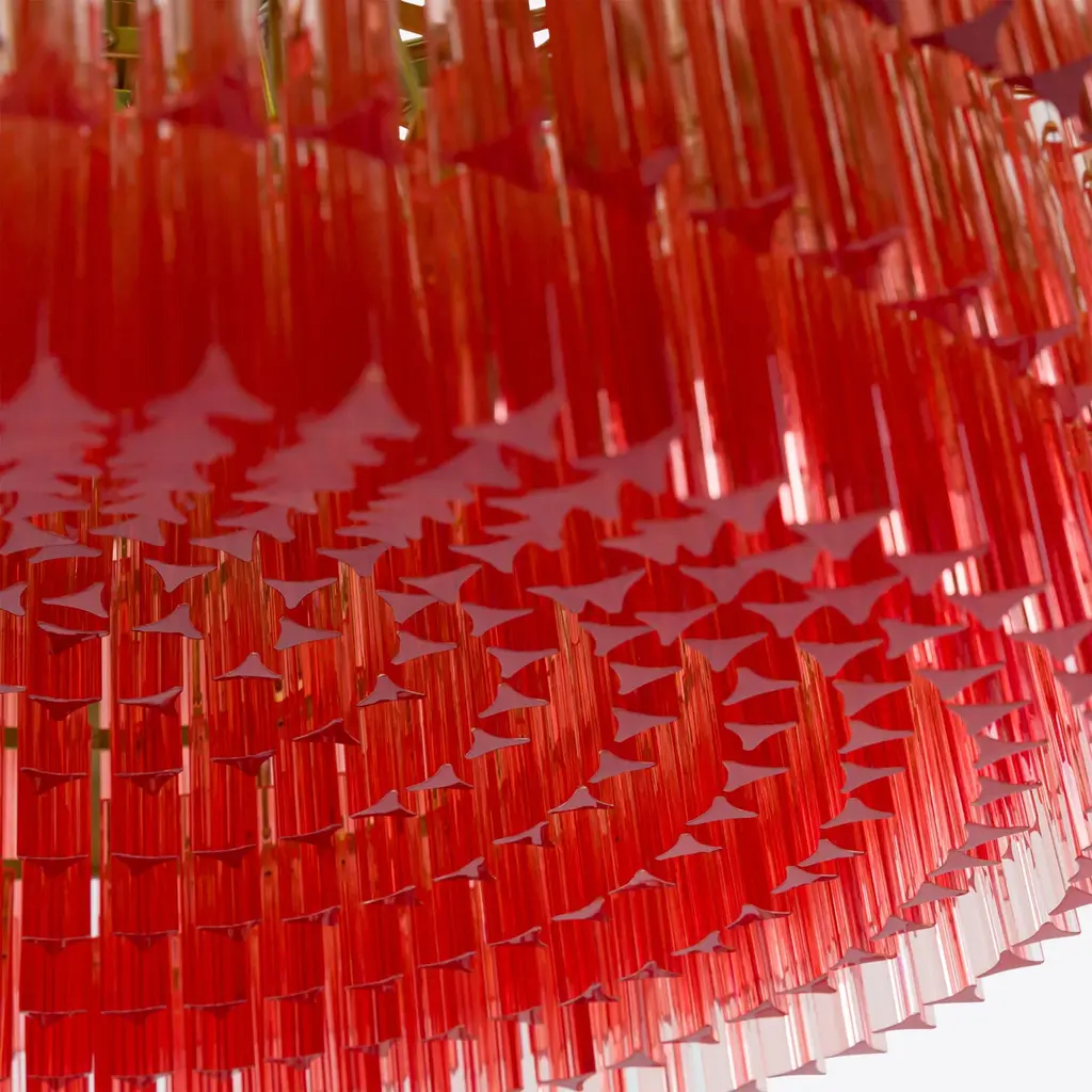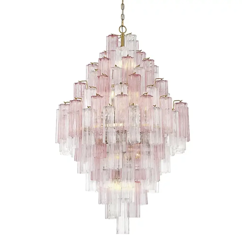 Layer upon layer of mid-century inspired triedri glass prisms make our Amaro chandeliers the perfect centre piece for a living, dining room or lobby. Up to 250V (Europe/UK Standard).