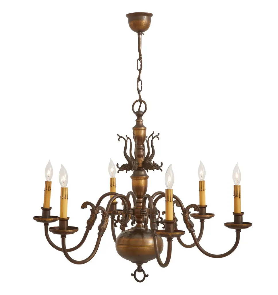 Large Vintage Flemish Style 8-Arm Chandelier With Fish And Bird Motifs Dutch