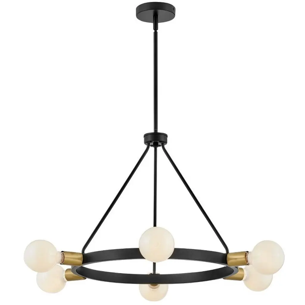A mid-century modern vibe with a glimpse of Hollywood glam? Yes, please. Orla brings the dimensional interest with multiple plays on circles and globes. The streamlined profile is simple, with each individual element contributing to the overall silhouette in a big way. Available in Lacquered Brass or Black with Lacquered Brass accents, Orla makes a prominent style statement. G-style bulbs recommended.