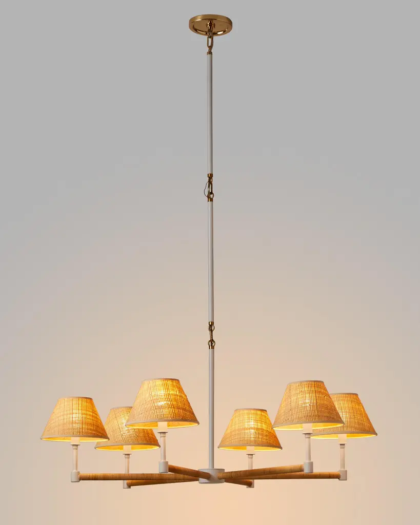 A reimagined classic. Our premier brass and rattan lighting collection. A lithe form, our signature handwrap, topped with a winsome shade.
