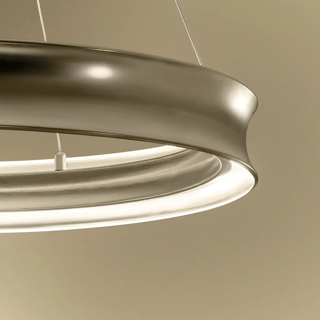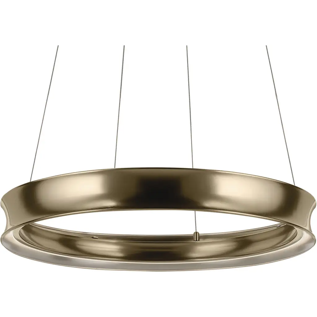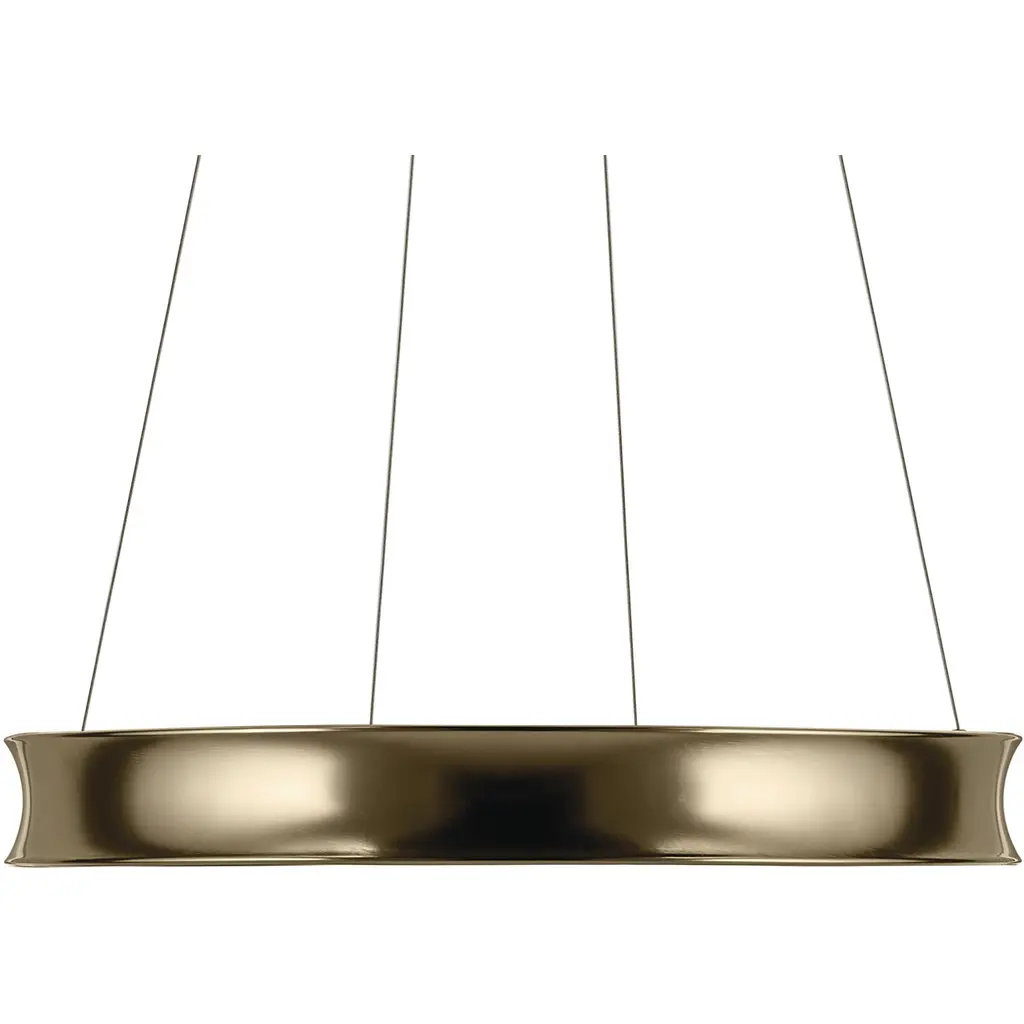 Inspired by the silhouette of a cuff bracelet, this Larousse chandelier is a statement piece in its own right. An integrated LED light shines from within the curved band. Its simple silhouette brings striking illumination to your space. Both the canopy and the band feature a tapered curve giving the fixture dimension. Its simply stunning.