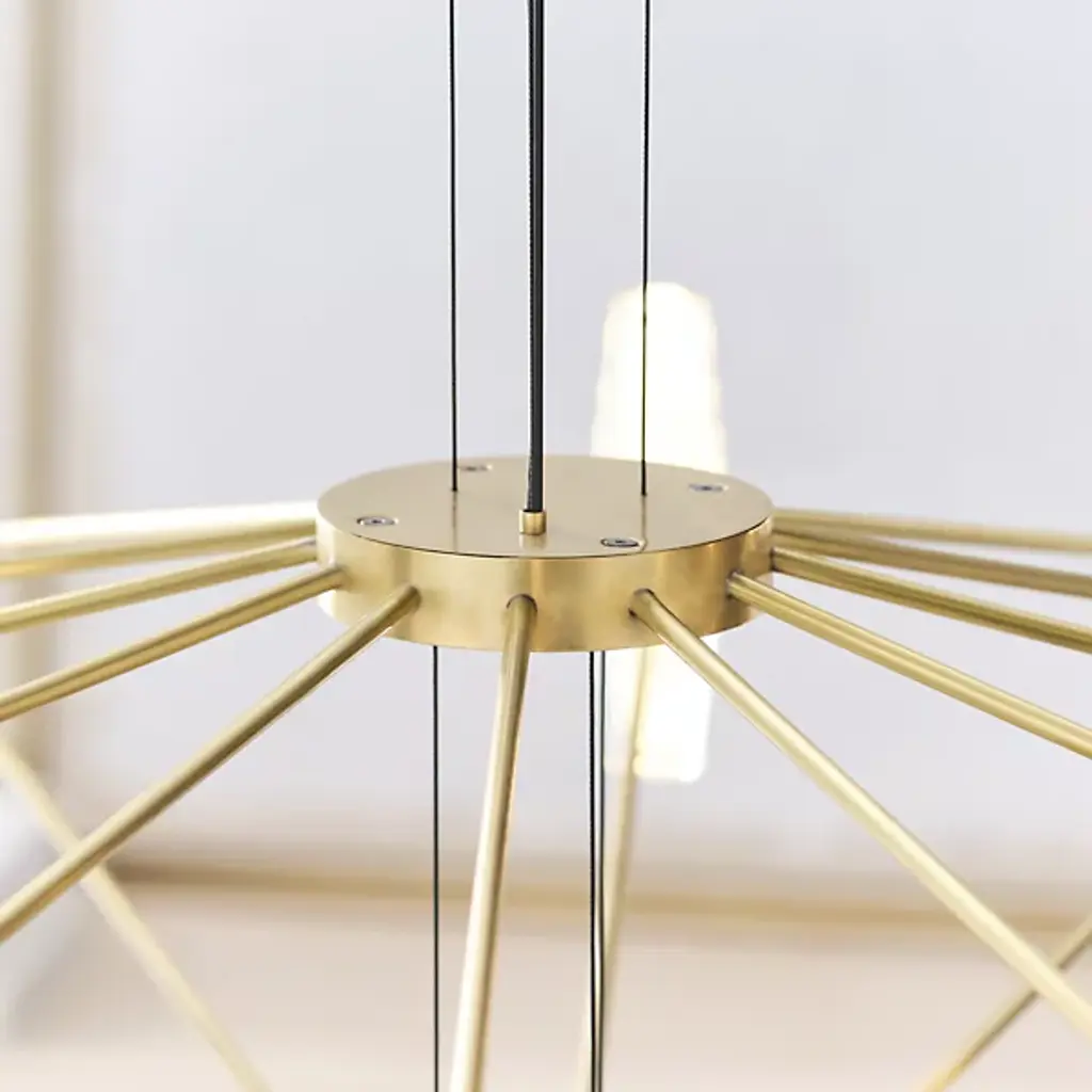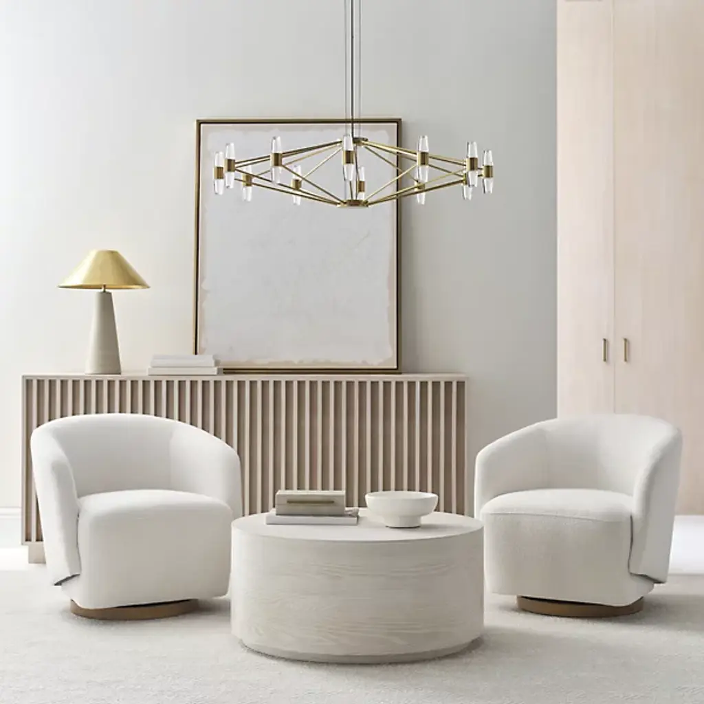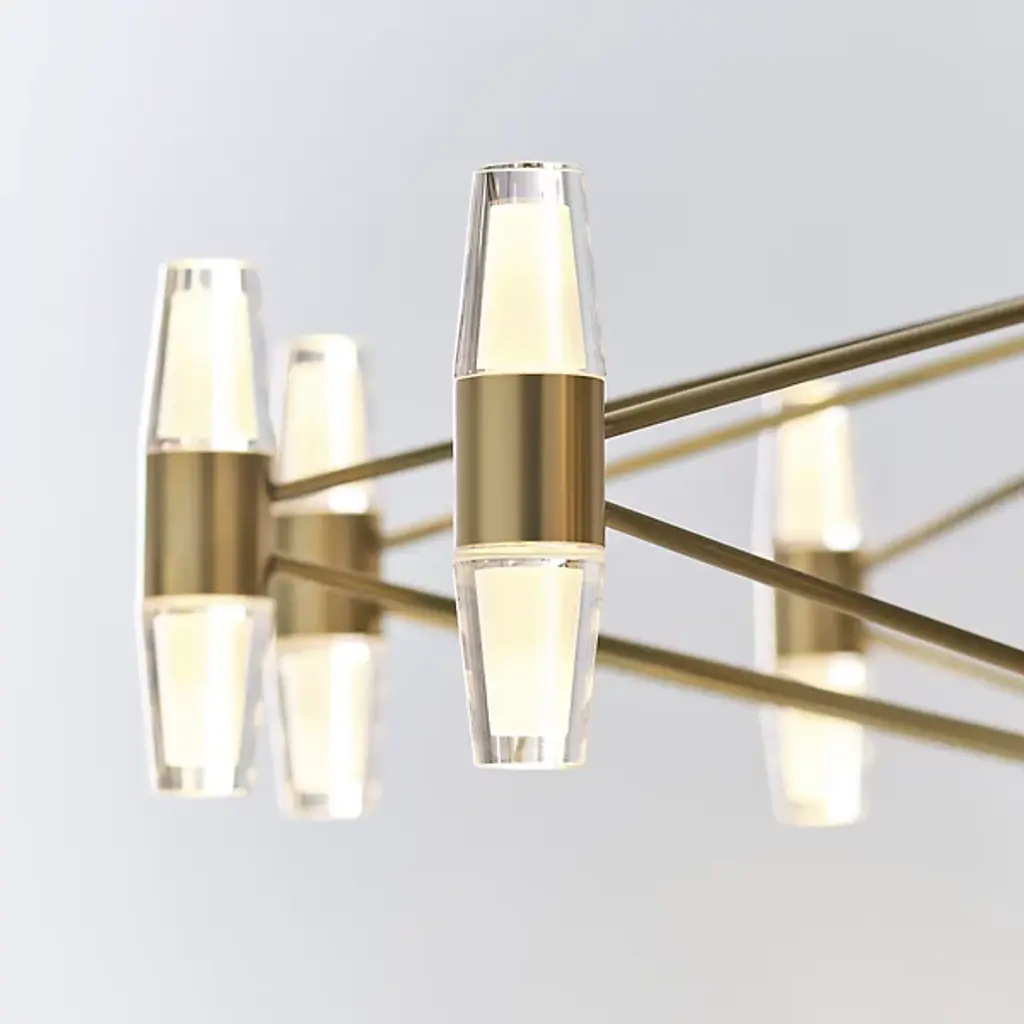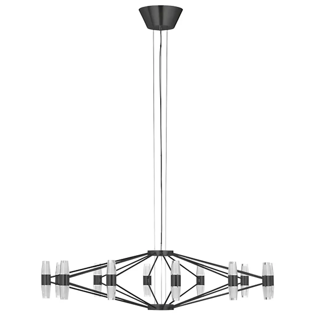 The Lassell LED Chandelier from Visual Comfort Modern brings bold scale and refined geometry to contemporary interiors. Designed by Sean Lavin, this standout piece features delicate brass arms extending from a central hub to laser-etched crystal glass tubes. The result is a clean, linear form that plays with light and depth. This grand design is damp-listed and versatile, a strong choice that enhances dining tables, kitchen islands, or conference settings and makes a gorgeous, lasting impression.