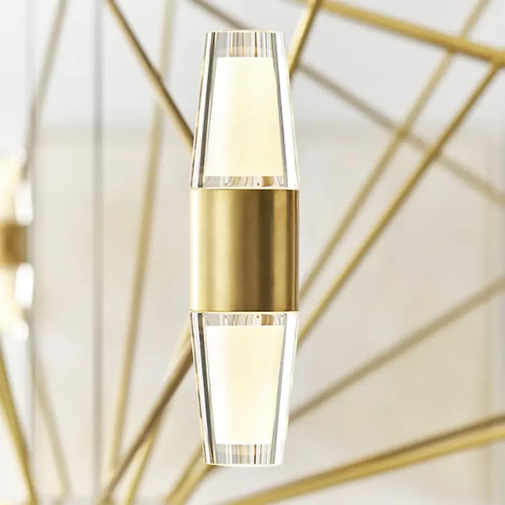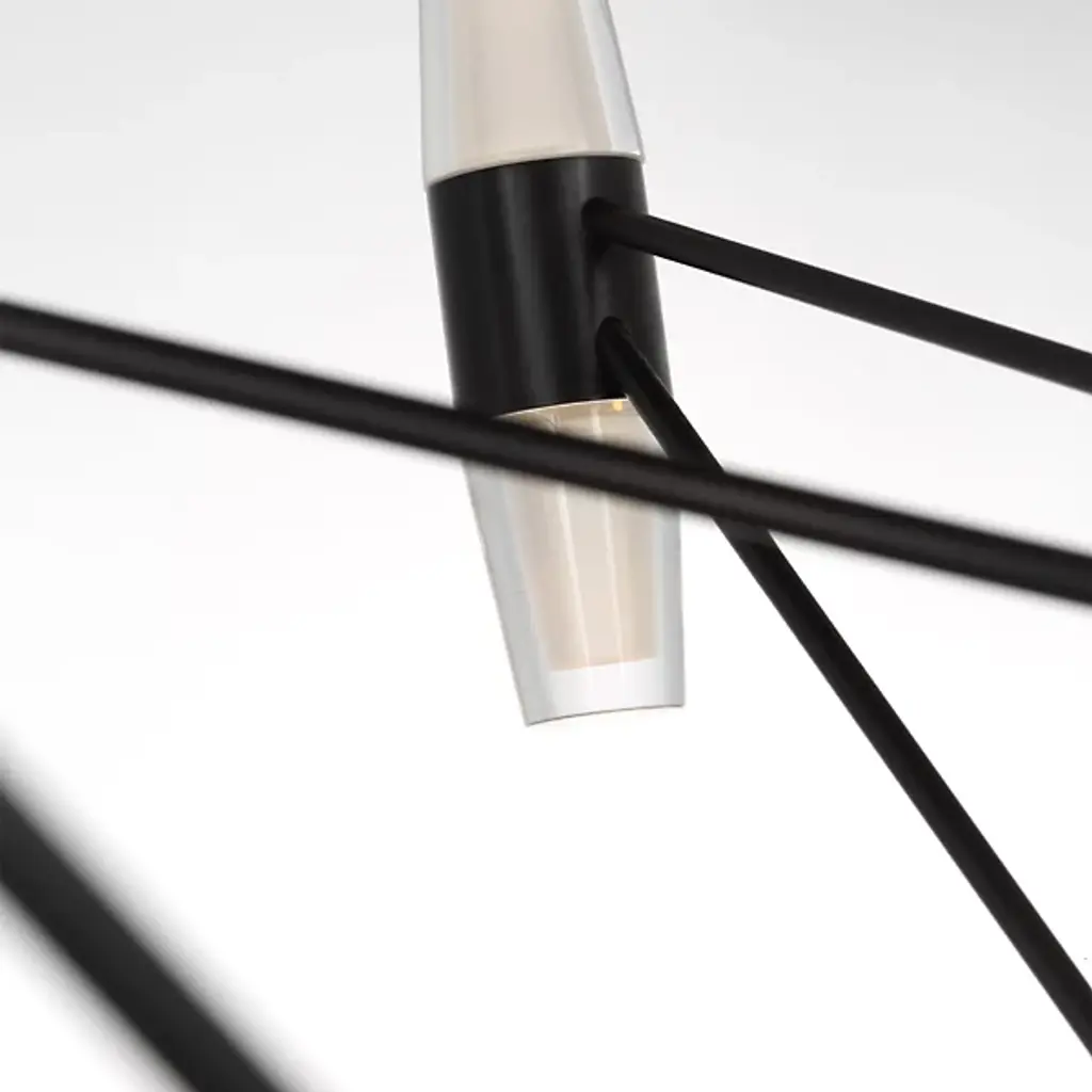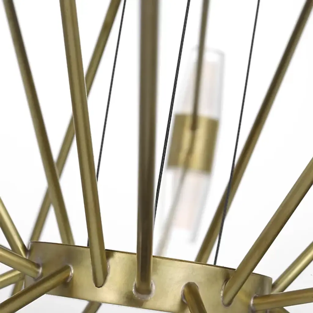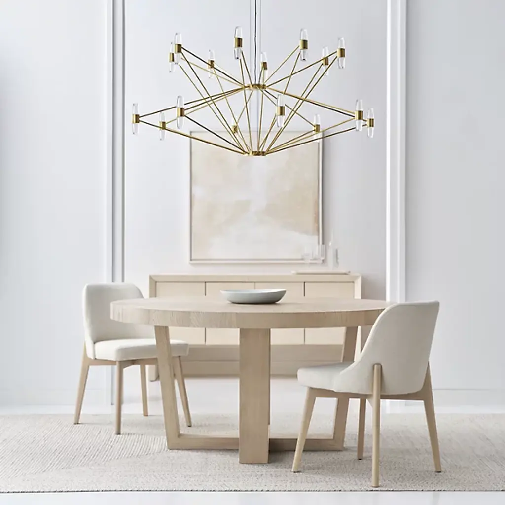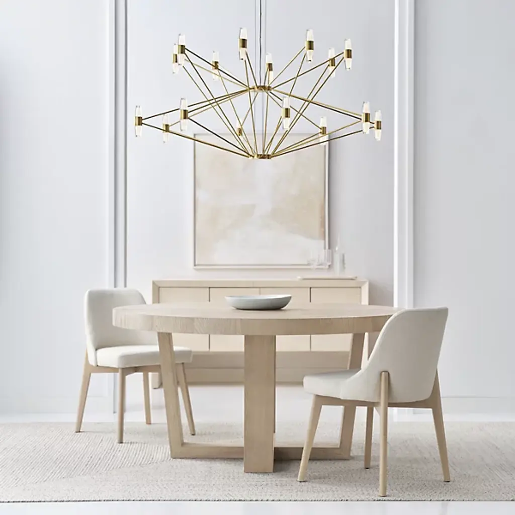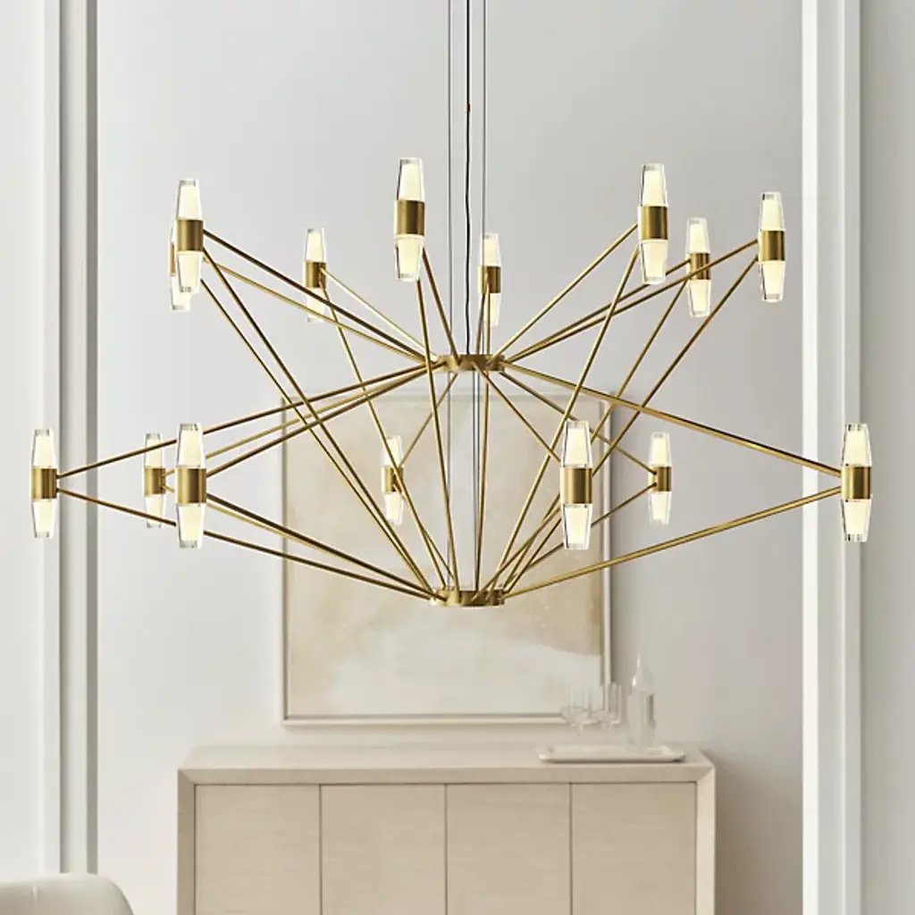 The Lassell Two Tier LED Chandelier from Visual Comfort Modern enhances large spaces with angular precision. Designed by Sean Lavin, it features a layered, two-tier structure with slender brass arms radiating outward to support efficient LED modules inside etched crystal glass tubes. Damp-listed and thoughtfully constructed, it brightens large gathering spaces with a sculptural, Mid-Century Modern edge. Combining sharp lines and translucent materials creates a dynamic presence that casts a beautiful, layered light.
