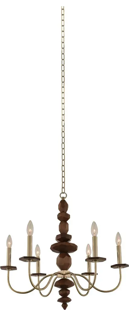 The Lassen collection boast organic shapes that make this truly stunning series. Featured in a champagne gold finish with natural cut wood column and bobeches.Number of Bulbs: 6Wattage: 60Bulb Type: E12 CandelabraBulb Included: FalseUL Listed: True