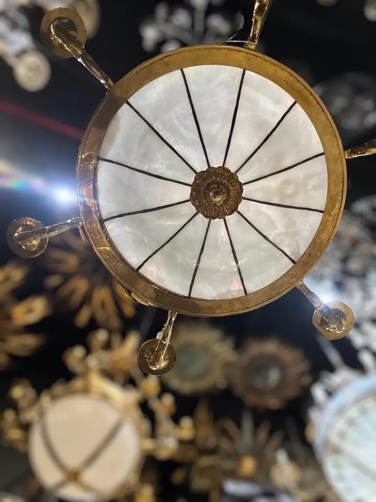 Late 19th Century Caldwell Bronze Chandelier With Leaded Glass