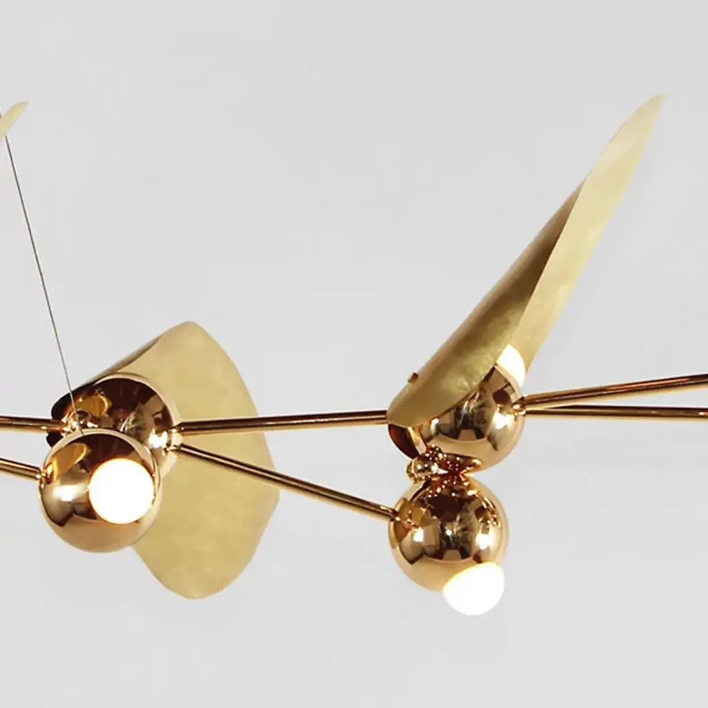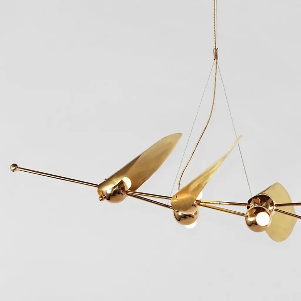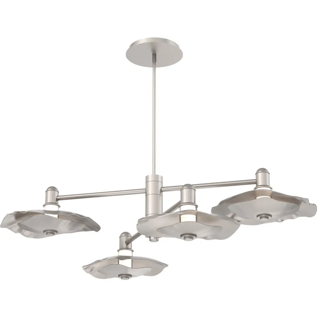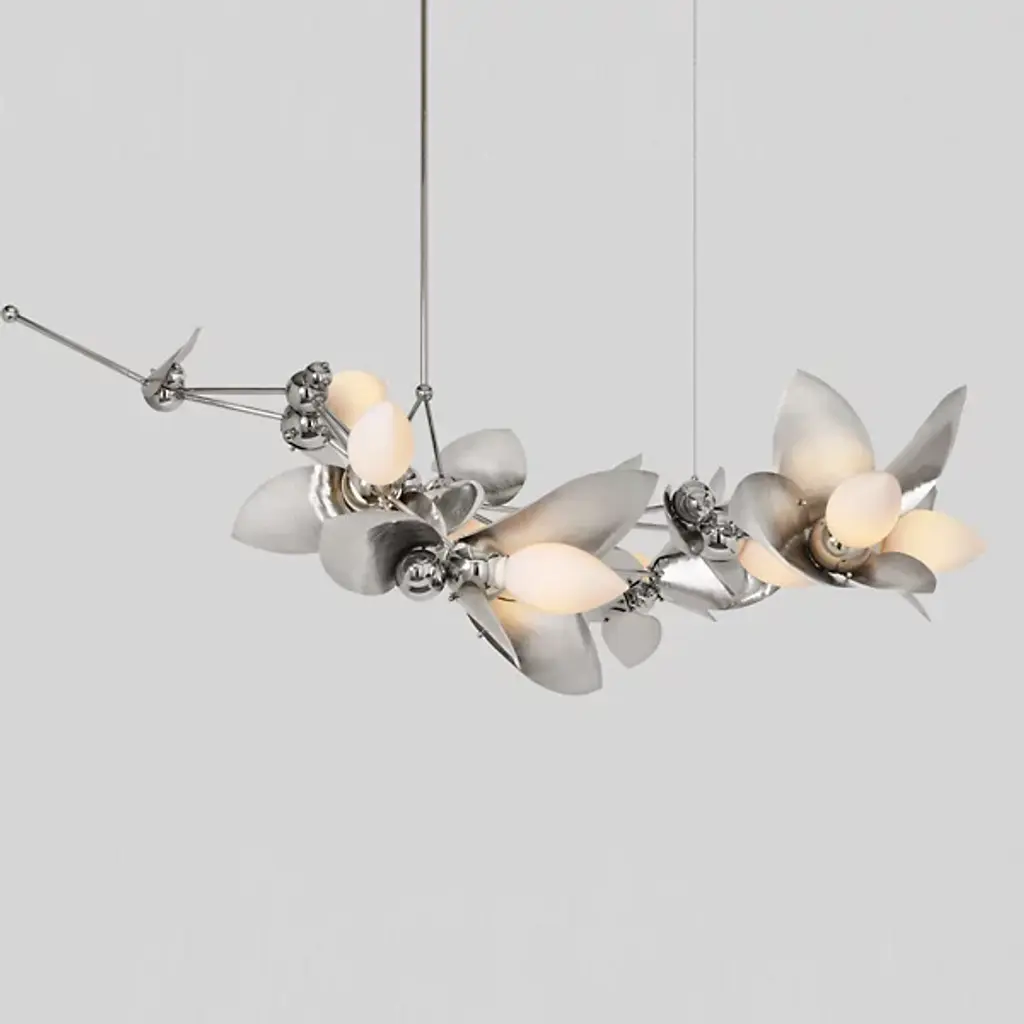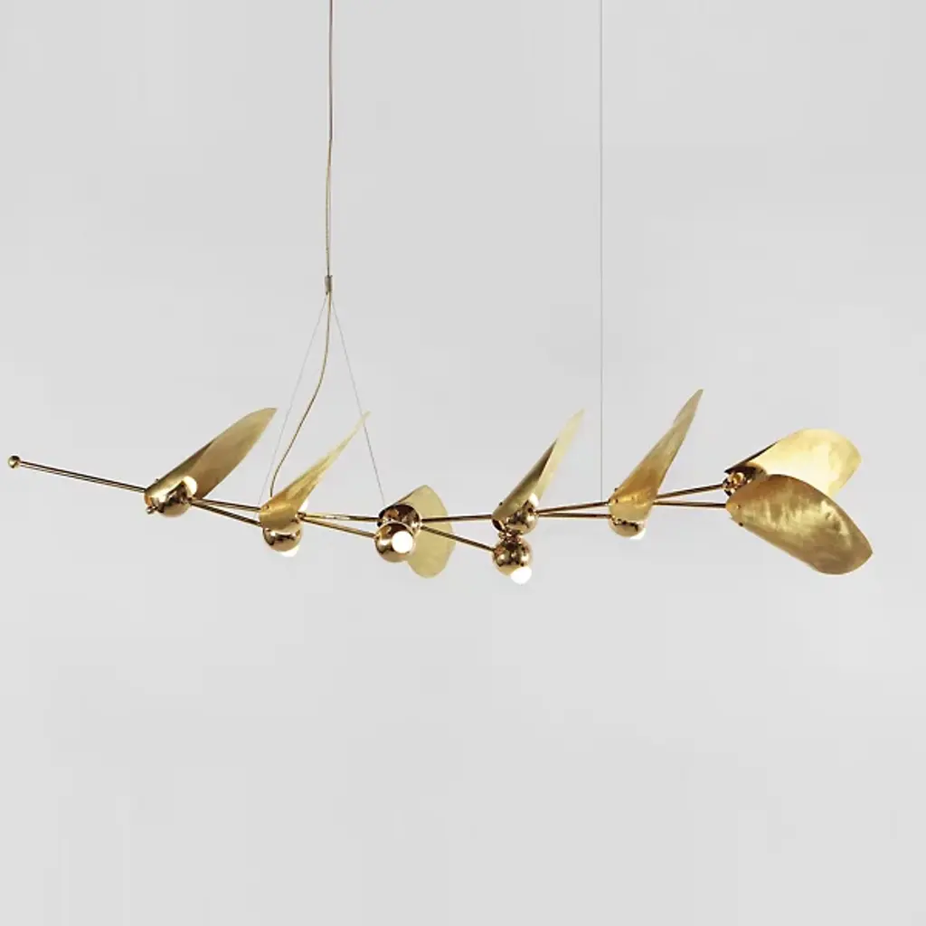 Give your living space a look of sophistication with the Laurel Linear Chandelier by Rosie Li Studio. The realized vision of designer Rosie Li, this chandelier takes on a botanical theme. Fine brass is formed into ultra-slender stems which are lined by leaf-shaped platelets. Multiple, vibrant lights are enveloped by shades and are supported by beautiful metal globes. This hanging furnishment is versatilely made. Its contemporary design makes the Laurel Linear Chandelier well-suited for placement in foyers, living rooms, bedrooms, and more.